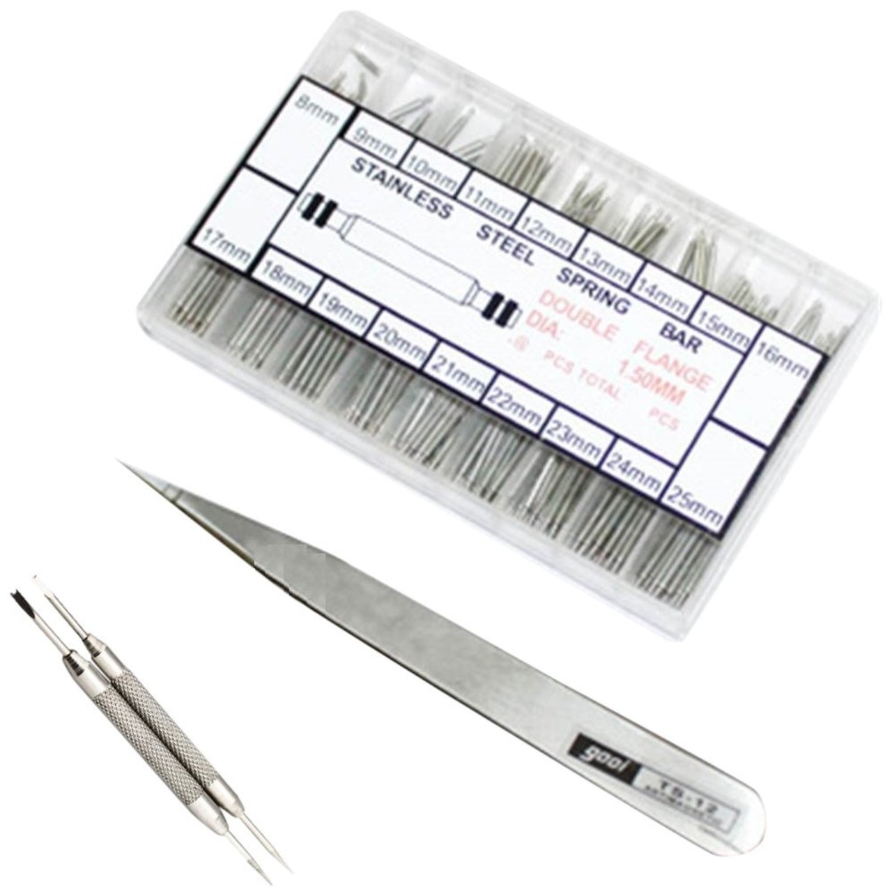 腕時計 ベルト ばね棒 18サイズ セット (8mm-25mm) ピンセット + バネ棒はずし 2本付 ご注意ください フタをあける際、ラベルが底面側に貼られている場合があります。確認しながら、慎重にお開けください。