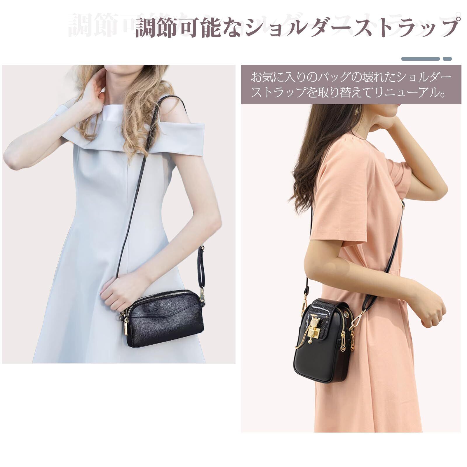 【長さ調節可能】レザーショルダーストラップの調節範囲は65~130cm、幅は2cmです、本体重さ:約60g。レディースショルダーストラップ、付け替え用ショルダー、交換用ストラップ。