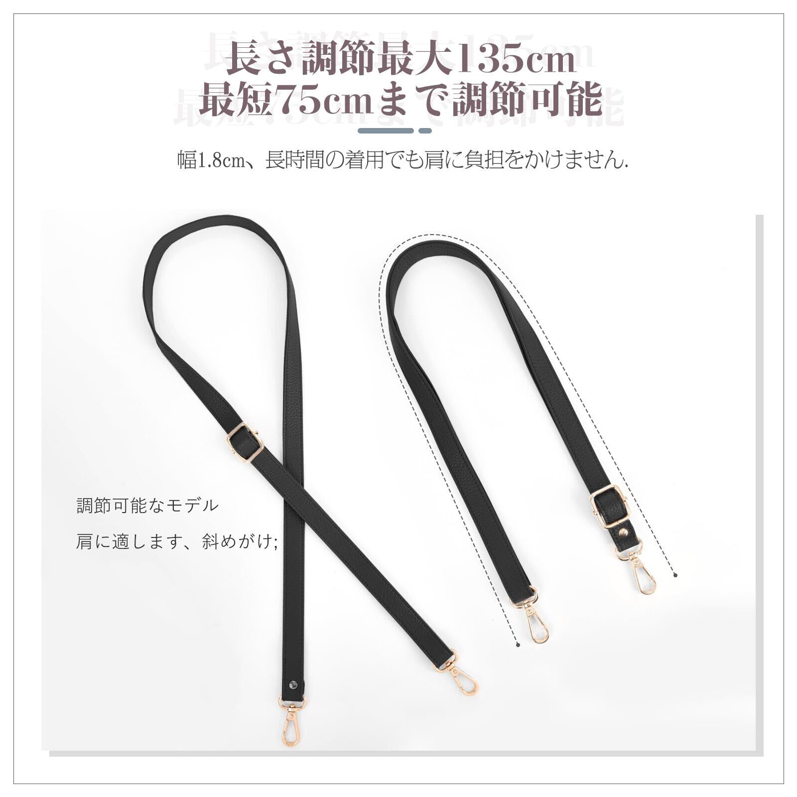 【高品質の付け替え用ショルダーストラップ】DIYバッグの付け替え用ショルダーストラップやハンドルに最適です。ハンドバッグ、財布、クラッチバッグ、ショルダーバッグなど様々なバッグに完璧にマッチし、シンプルでファッショナブルなアイテムです。付け替え用ショルダーストラップは、ハンドバッグ/トートバッグをショルダーバッグに変えるのに最適で、ハンズフリーへ。頑丈な金具使用しており、取り付けや付け替えが便利です。