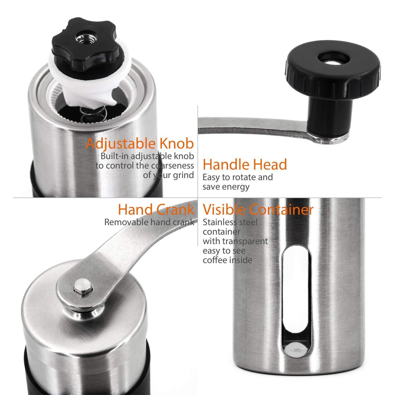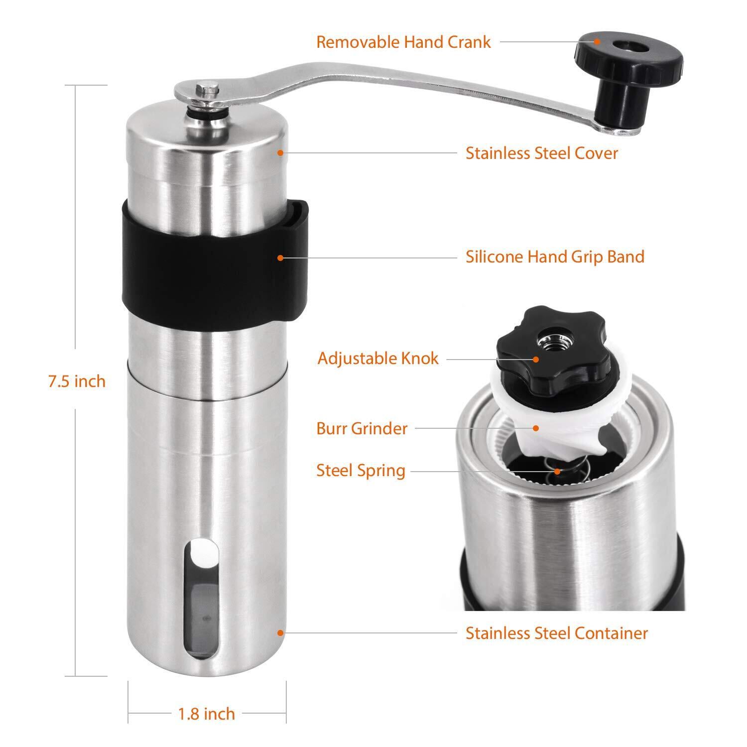 Winwintech 新しいより大きな容量30グラムミニ手動コーヒーミルグラインダーステンレス鋼コーヒー豆ハンドクランクポータブルミルで滑りを防止するためのシリコンスリーブ、そしてハンドクランクの回収が容易用ホーム、オフィス、屋外キャンプ、ハイキングや旅行(19 * 4.8CM)