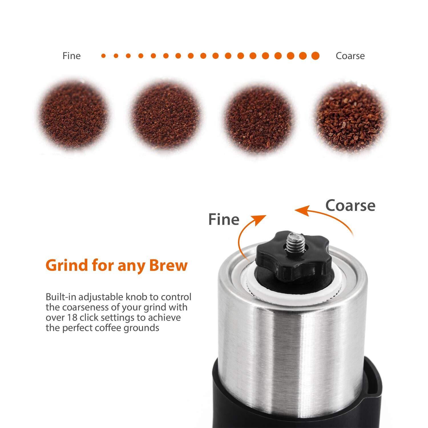 2.高品質のステンレス鋼のコーヒー豆はそれが耐久性のある長期間使用できることを保証するために挽きます、そして挽き器の中の調節可能な陶磁器のぎざぎざはさまざまな種類のコーヒー,粗粉砕まで時計回りに調整可能です、容器だけでなく、コーヒーの量を見やすくするための寸法付き。