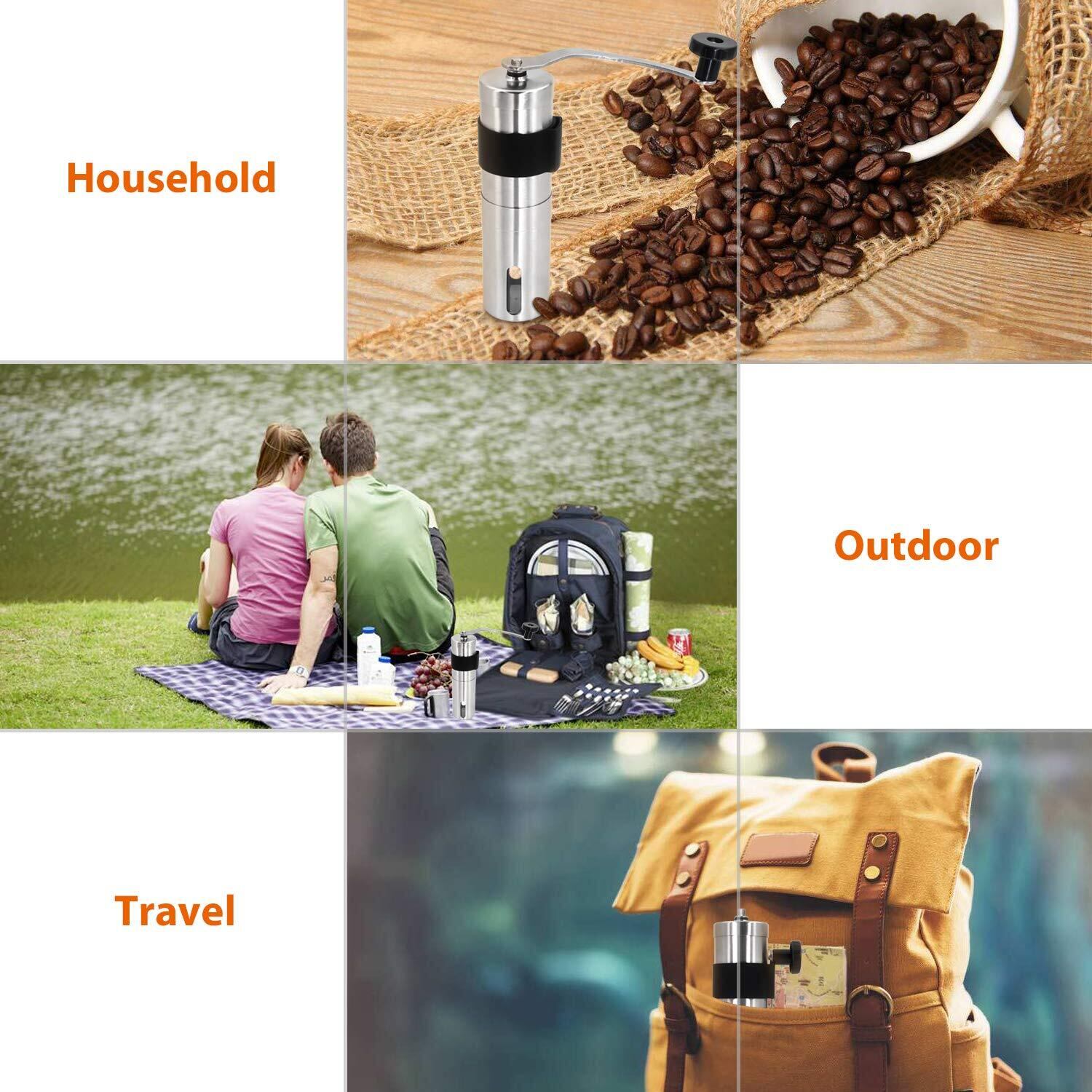 5.コーヒーを挽くだけでなく、また毎日の家庭の台所使用のためにコーヒーと同じような他の豆を挽くことができます。家庭用、オフィス用、または屋外用のキャンプ、ハイキング、旅行などにも使用できます。