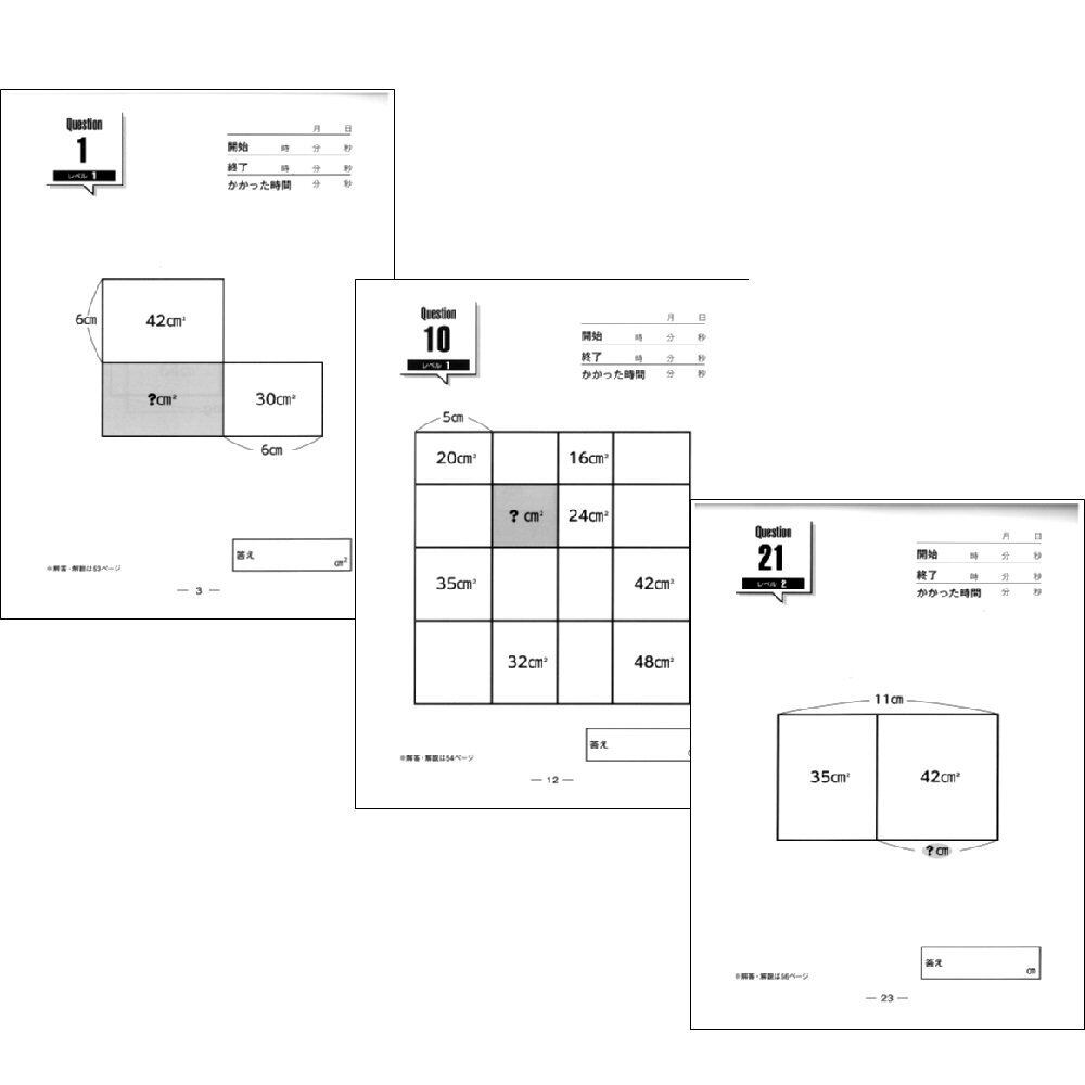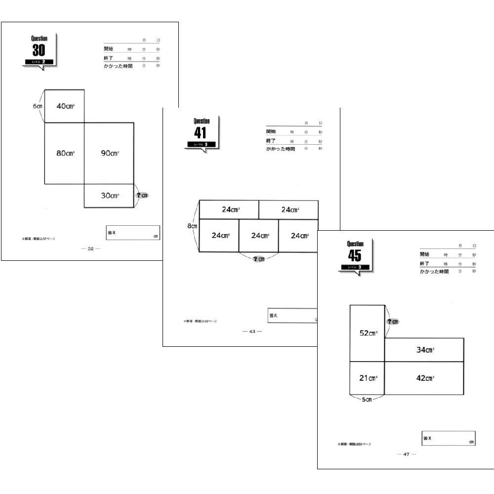 「小学校で習った算数で解ける面積迷路」は、整数の計算だけで面積や辺の長さを求める問題が、全50問収録されています。