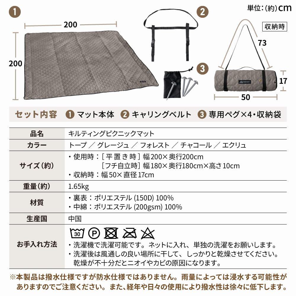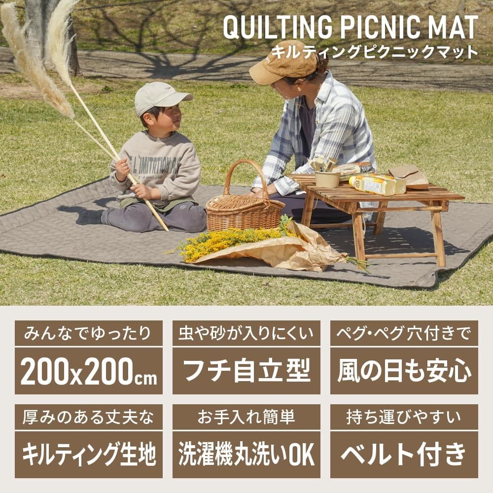 Viaggio+ レジャーシート 厚手 大判 200×200 キルティングピクニックマット (グレージュ)
