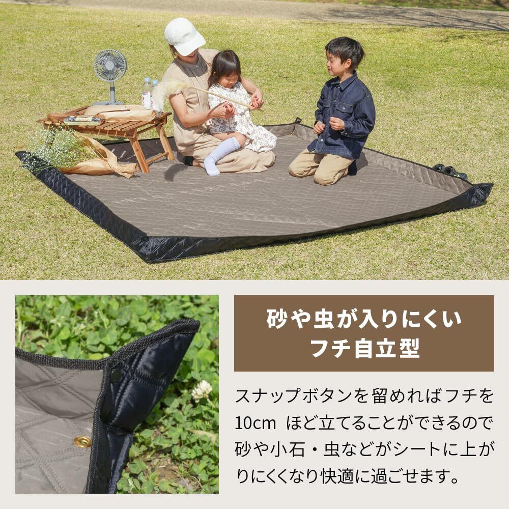 【砂や虫が入りにくいフチ自立型】スナップボタンを留めればフチを10cmほど立てることができるので、砂や小石・虫などがシートに上がりにくくなり快適に過ごせます。