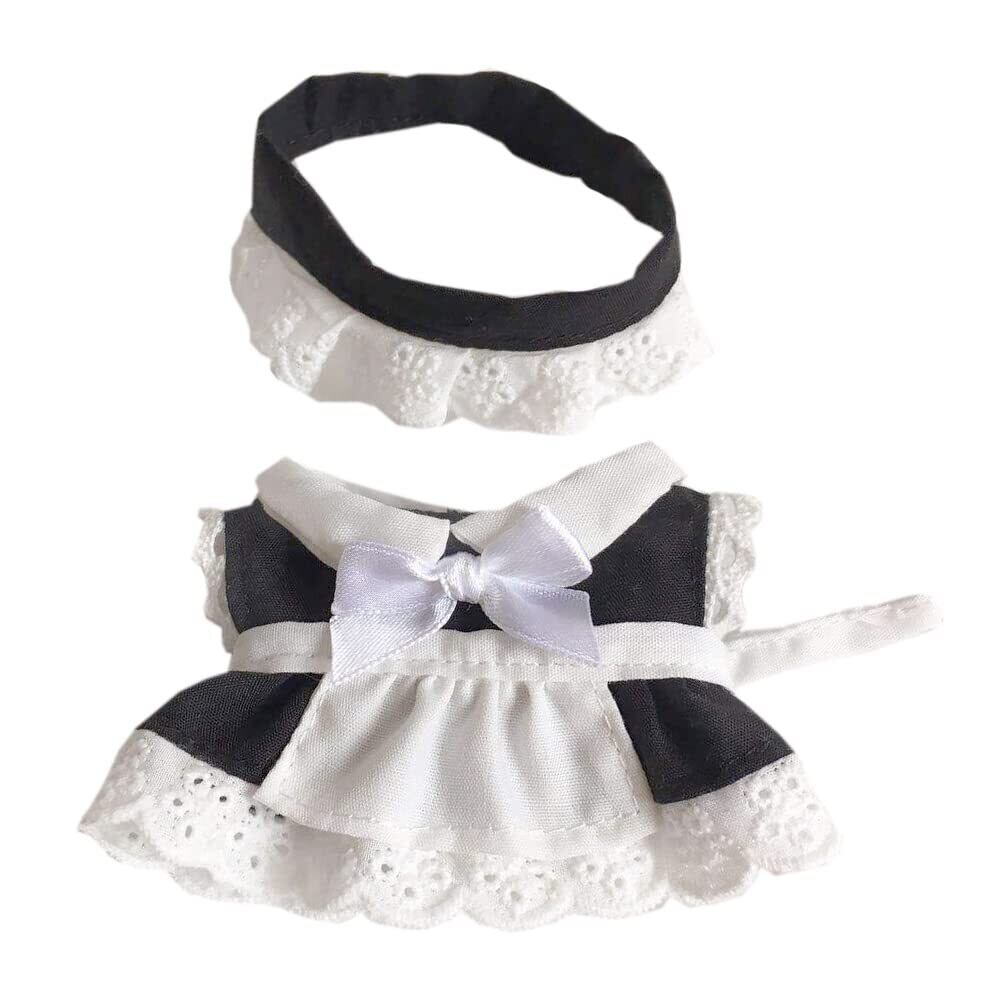 niannyyhouse 10cm ぬいぐるみ 服 メイド服 ヘッドウェア エプロン ドレス 着せ替え 綿人形 アクセサリー (Black)