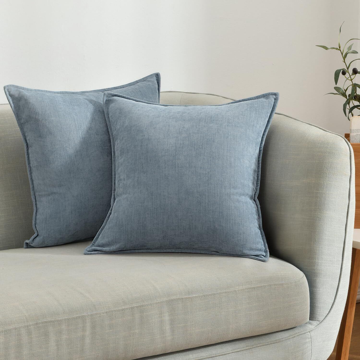 クモリ(Kumori) クッションカバー 45X45cm 2枚セットシュニール織り 北欧 おしゃれ 無地 シンプル 肌触り良い ソファ背当て 装飾枕カバー 座布団カバー 和室 居酒屋 業務用 旅館 お料理屋 しっかりした生地 2枚組 ブルー