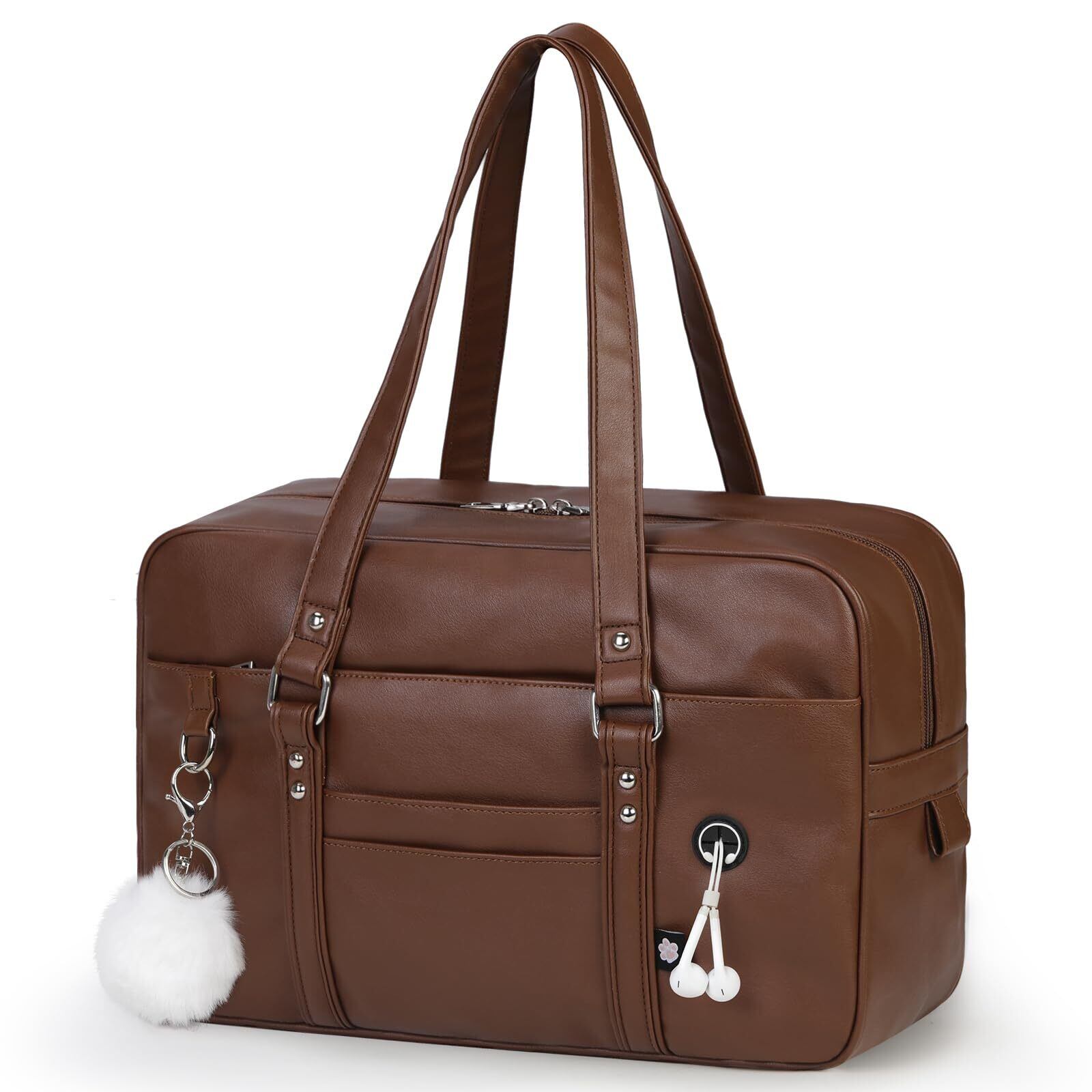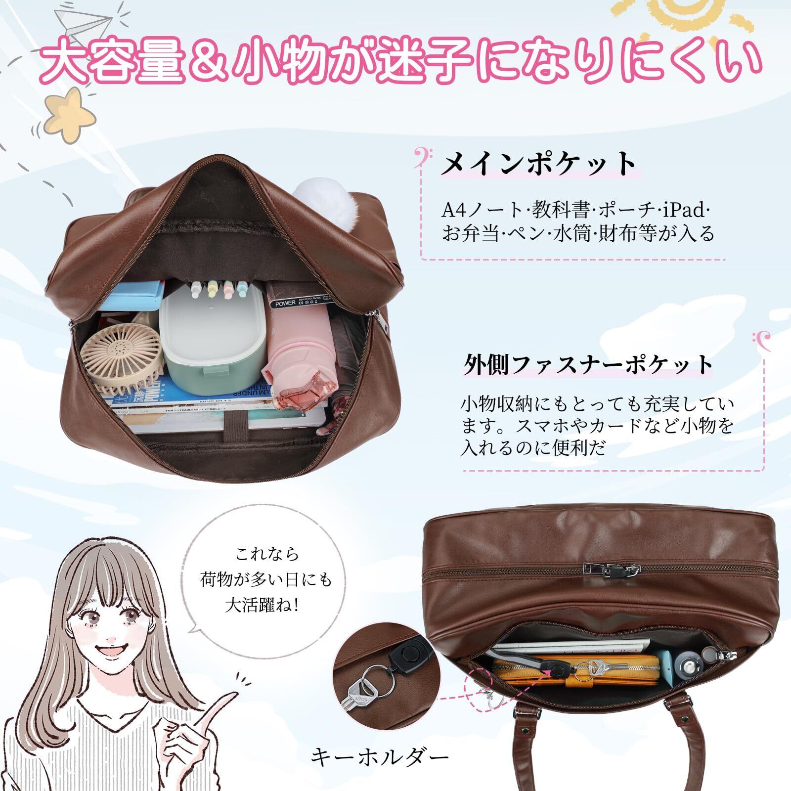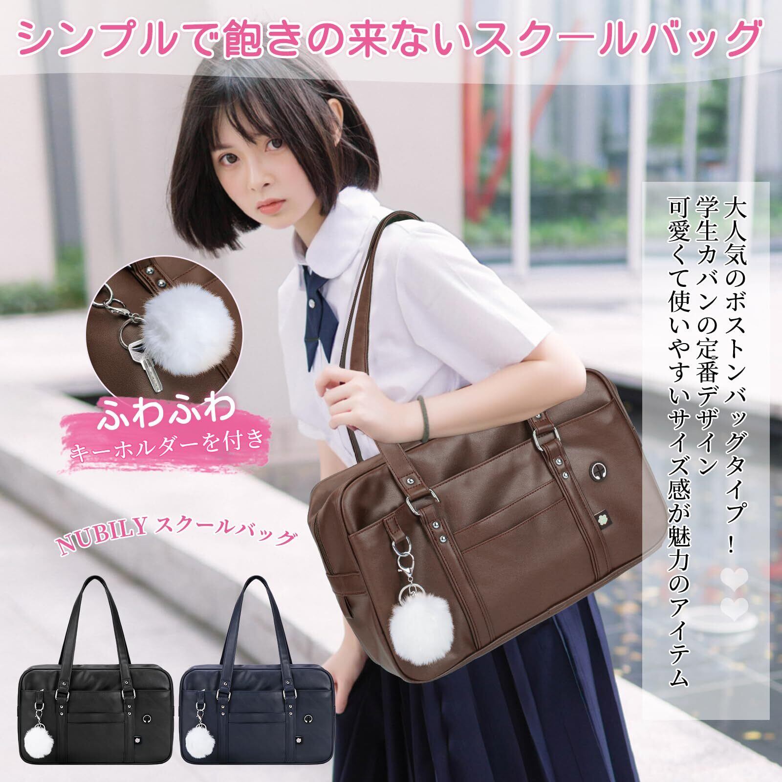 [NUBILY] スクールバッグ 高校生 女子 合皮 スクバ ボスドンバッグ 大容量 通学 修学旅行 レディース A4対応 軽量 男女兼用 学生鞄 可愛い ブラック 茶色 ネイビー