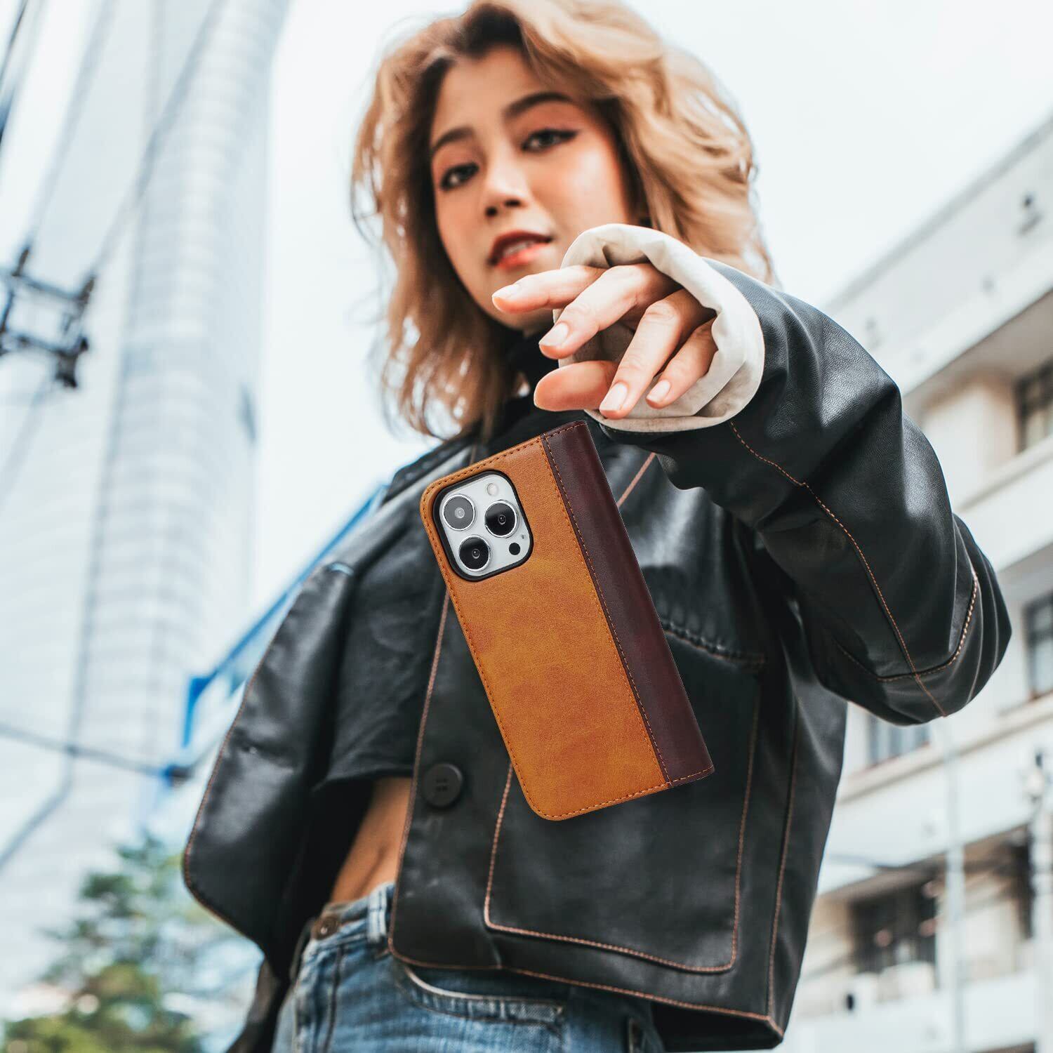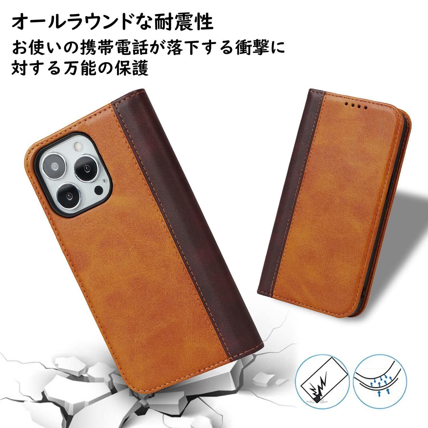 Havaya iPhone14ProMax ケース iphone 14 pro max ケース アイフォン14promaxケース 手帳型 耐衝撃 カバー マグネット カード収納(アイフォン14promax/アイホン14プロマックス/アイフォン14プロマックス/あいふぉん14promax 通用 6.7インチ対応)-イエロー+ブラウン