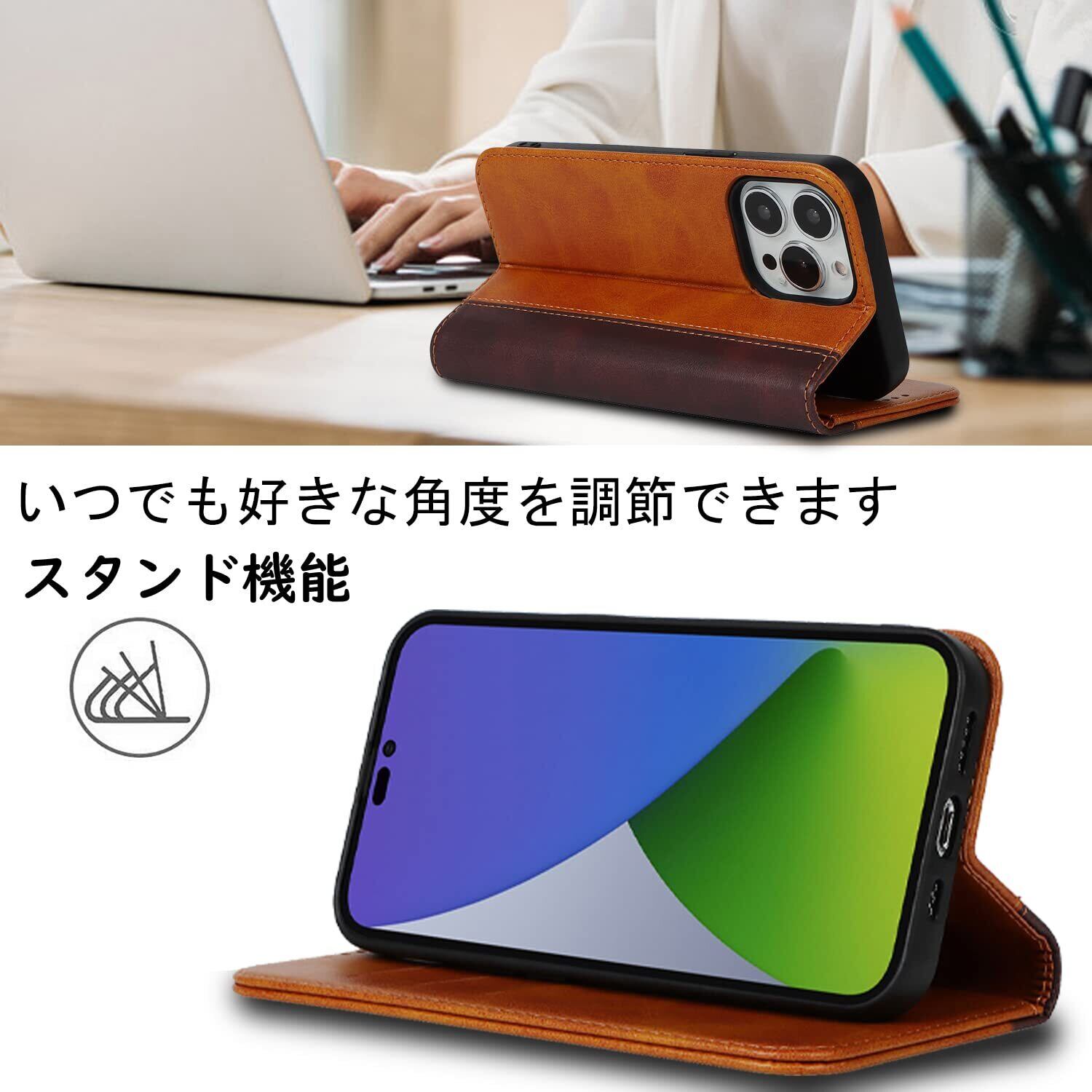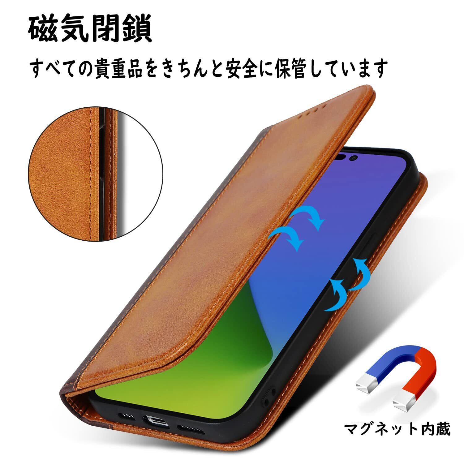 【収納機能】iPhone 14 Pro Maxケース内側には三つのカード入れとフリーポケットがつき、カード類や紙幣、名刺などが収納できます。カードスロットに16枚のカードを入れると、内蔵マグネットの機能を最大限に発揮し、カードが消磁されるのを防ぐことができます。横置きスタンド機能が付き、横向いて斜めに立てて、自由に角度を調整して、お好みの角度で動画鑑賞や読書などを楽しめます。長時間での新幹線、飛行機の中での暇つぶしに最適です。