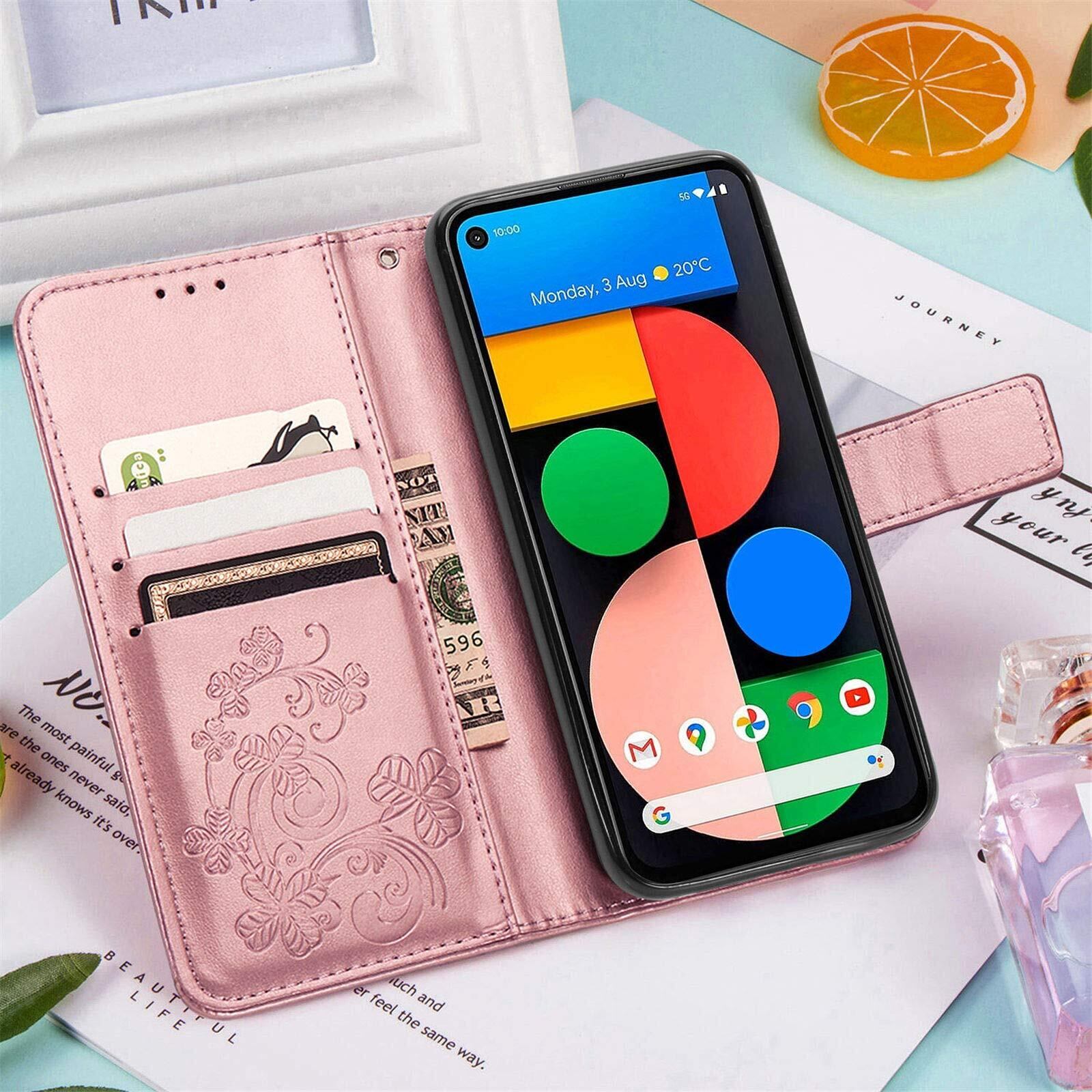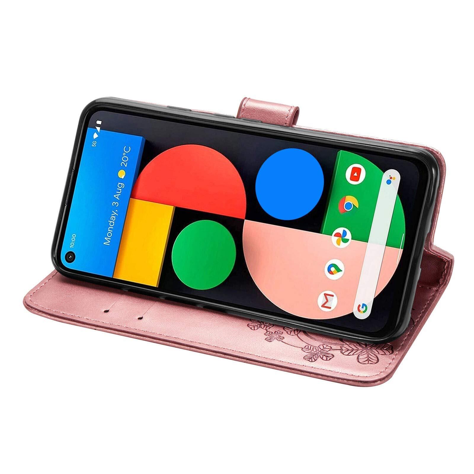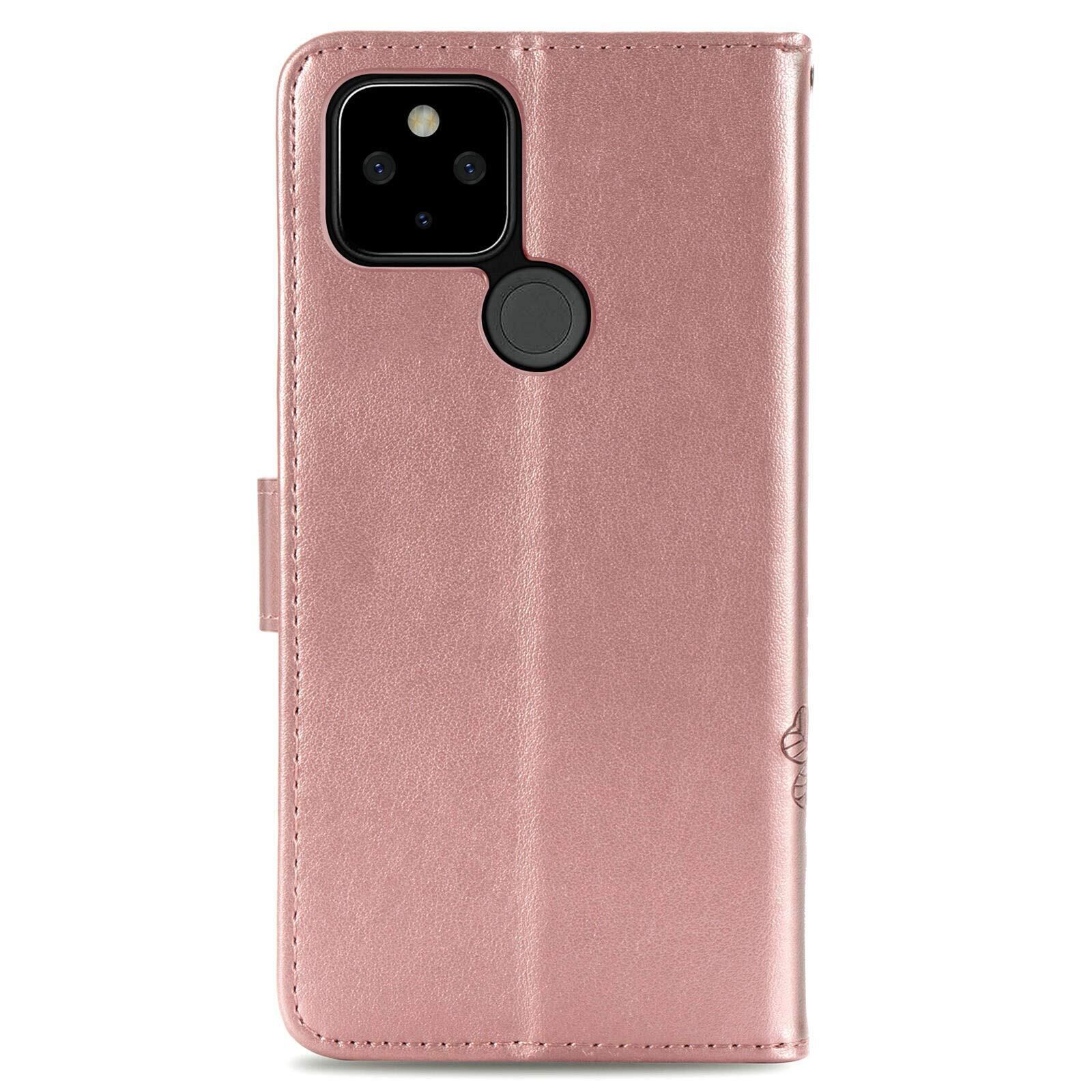 Google Pixel 4a 5G ケース シン フィット Pixel 4a 5G スマホ おしゃれ 純色 四つ葉のクローバーの印 PUレザー 上絵 手帳型 カード入れ softbank G025H 財布カバー スタンド機能 耐衝撃 防塵 耐久性 装着やすい 吸着の機能 キラキラ 胡蝶 ラインストーン デコ メチャ可愛い グーグル ピクセル4a 5g スマホカバー (Google Pixel 4A 5G, ローズゴールド)
