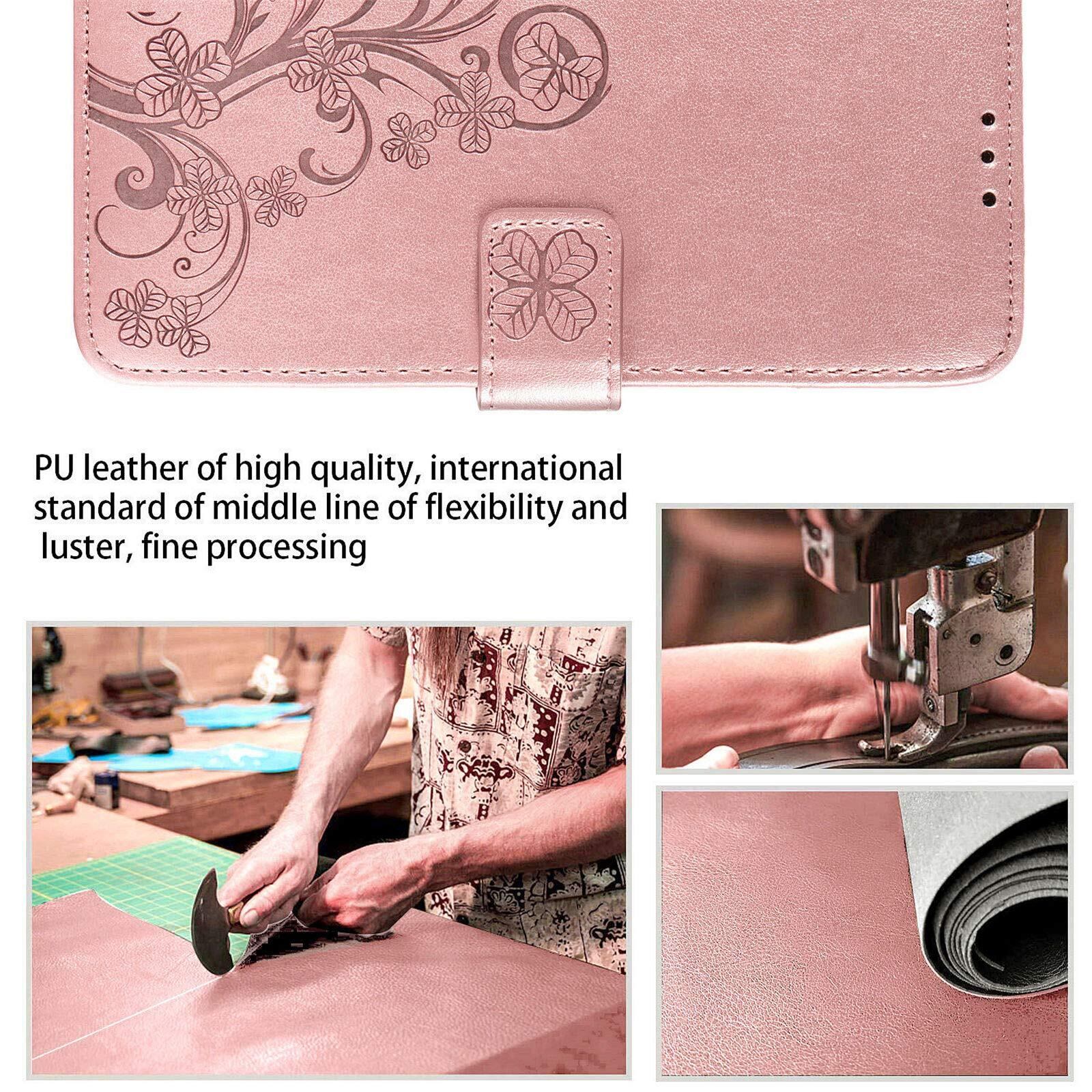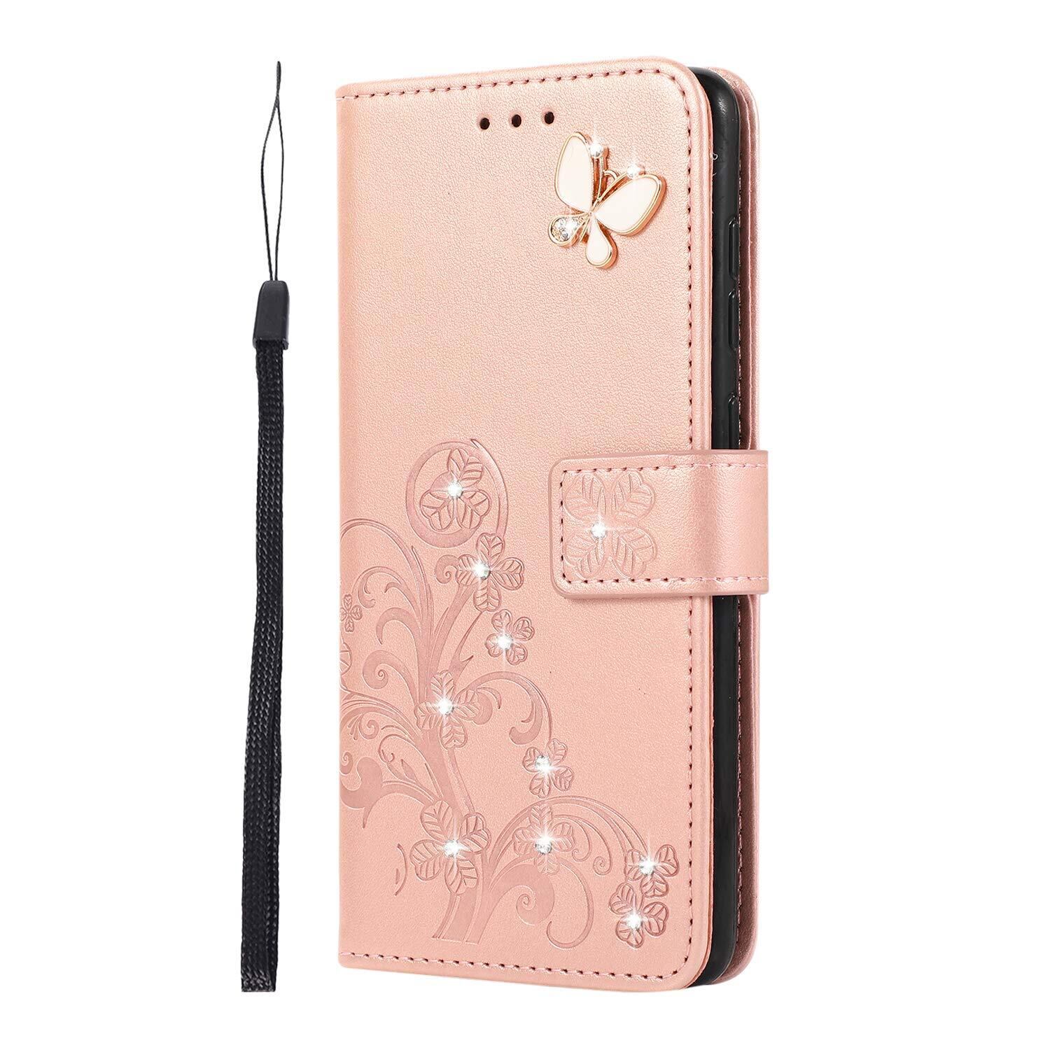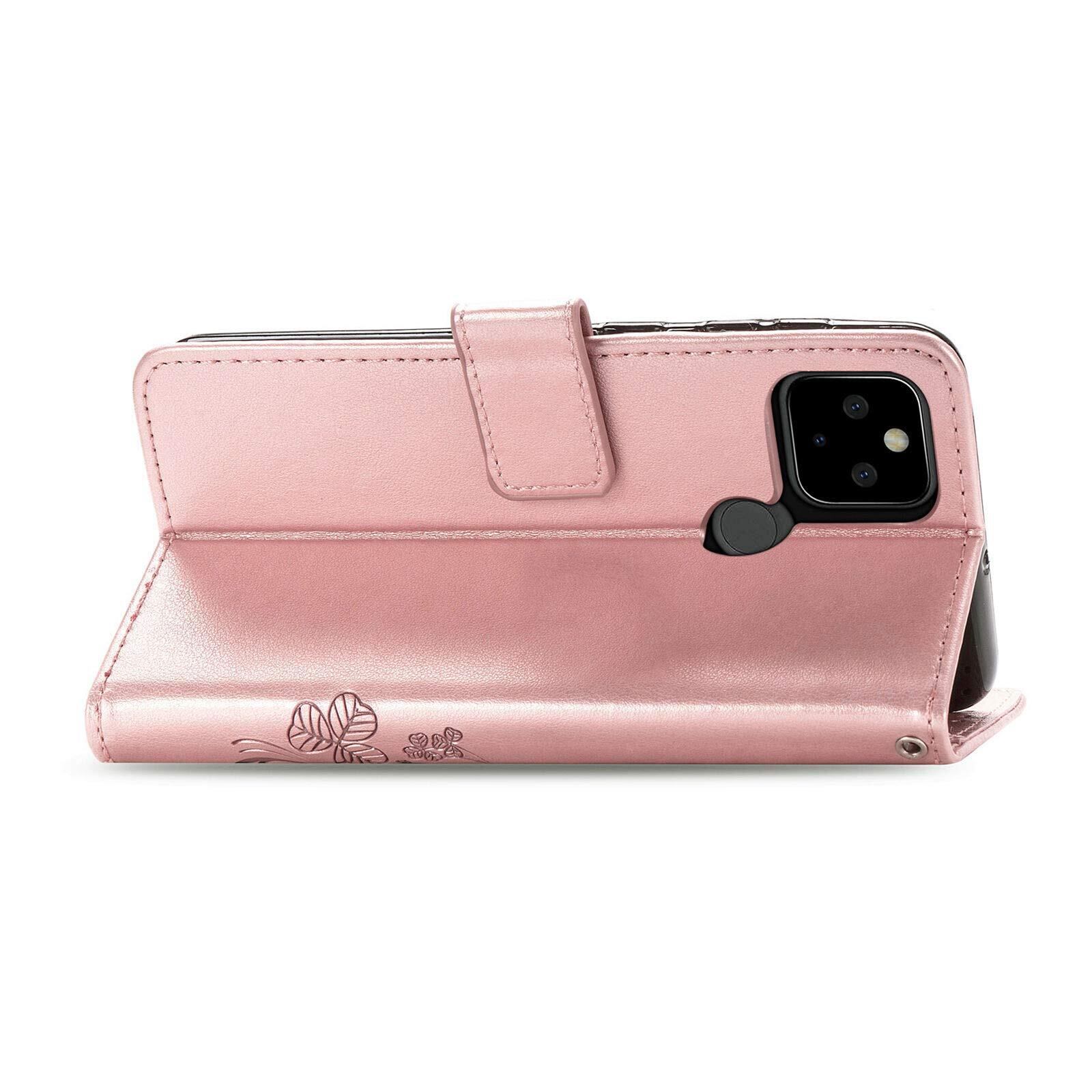 Google Pixel 4a 5G ケース シン フィット Pixel 4a 5G スマホ おしゃれ 純色 四つ葉のクローバーの印 PUレザー 上絵 手帳型 カード入れ softbank G025H 財布カバー スタンド機能 耐衝撃 防塵 耐久性 装着やすい 吸着の機能 キラキラ 胡蝶 ラインストーン デコ メチャ可愛い グーグル ピクセル4a 5g スマホカバー (Google Pixel 4A 5G, ローズゴールド)