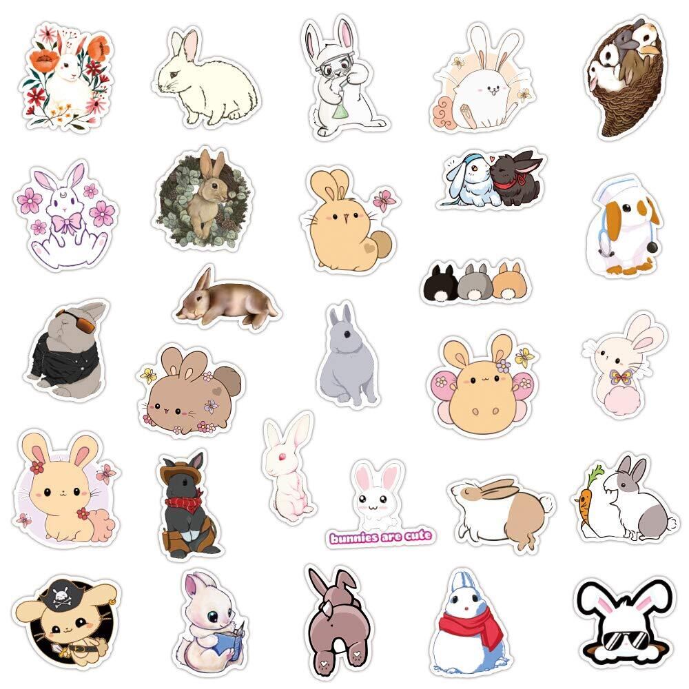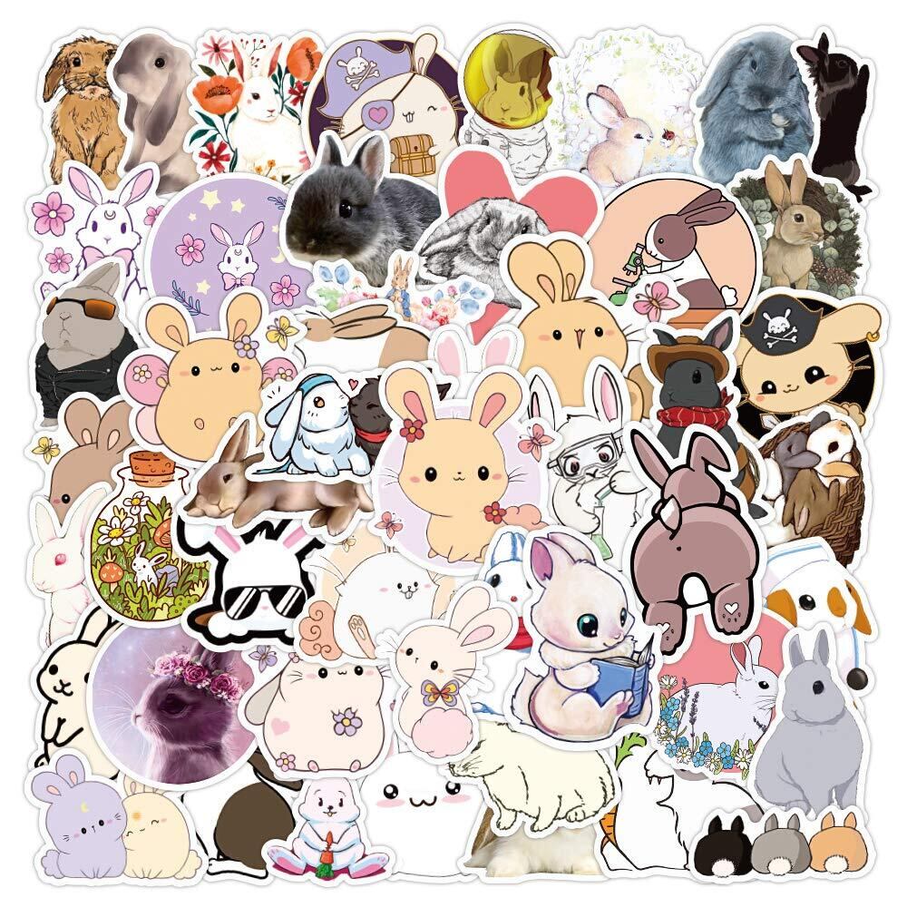 かわいいウサギステッカーセット 50枚入り かわいいウサギ防水デカール うさぎシールパック スーツケース ノートパソコン バイク ヘルメットなど適用