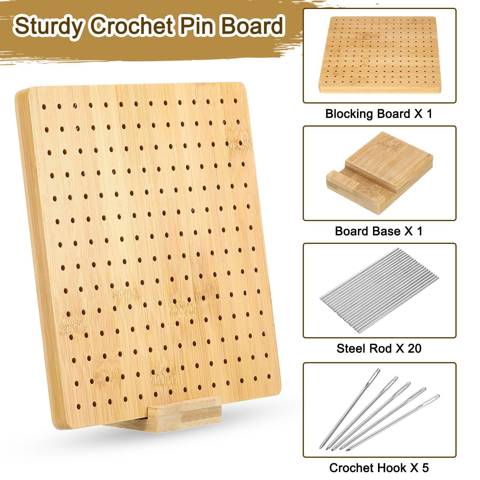 PATIKIL かぎ針編みのブロッキングボード 木製ブロッキングボード 20ピンと5フック付き かぎ針編みマシン 3 mm穴 かぎ針編みニットグラニースクエアヤーン手作りセーター用 19.5 cm