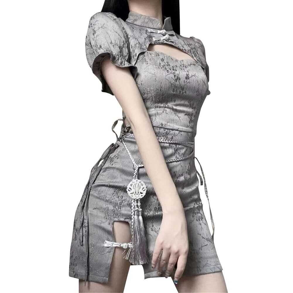 半袖でショート丈のチャイナドレスは、かわいいデザインの中にもセクシーな要素があり、着心地も抜群です。コスプレ、仮装パーティーや普段着の場合でも似合いますよ。