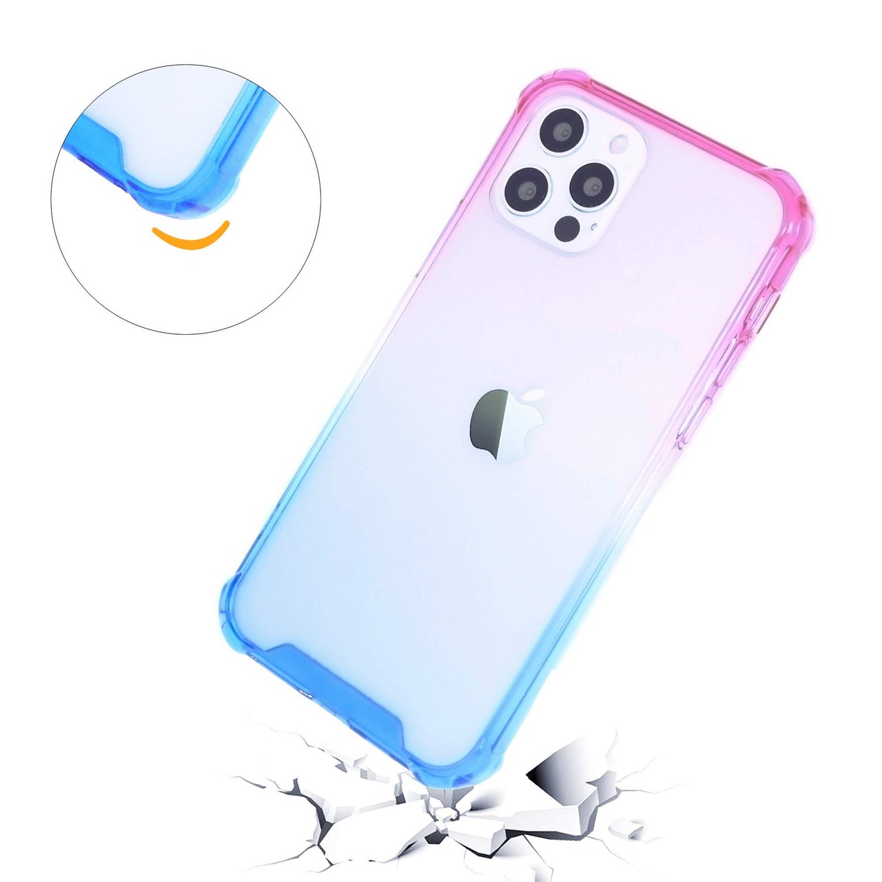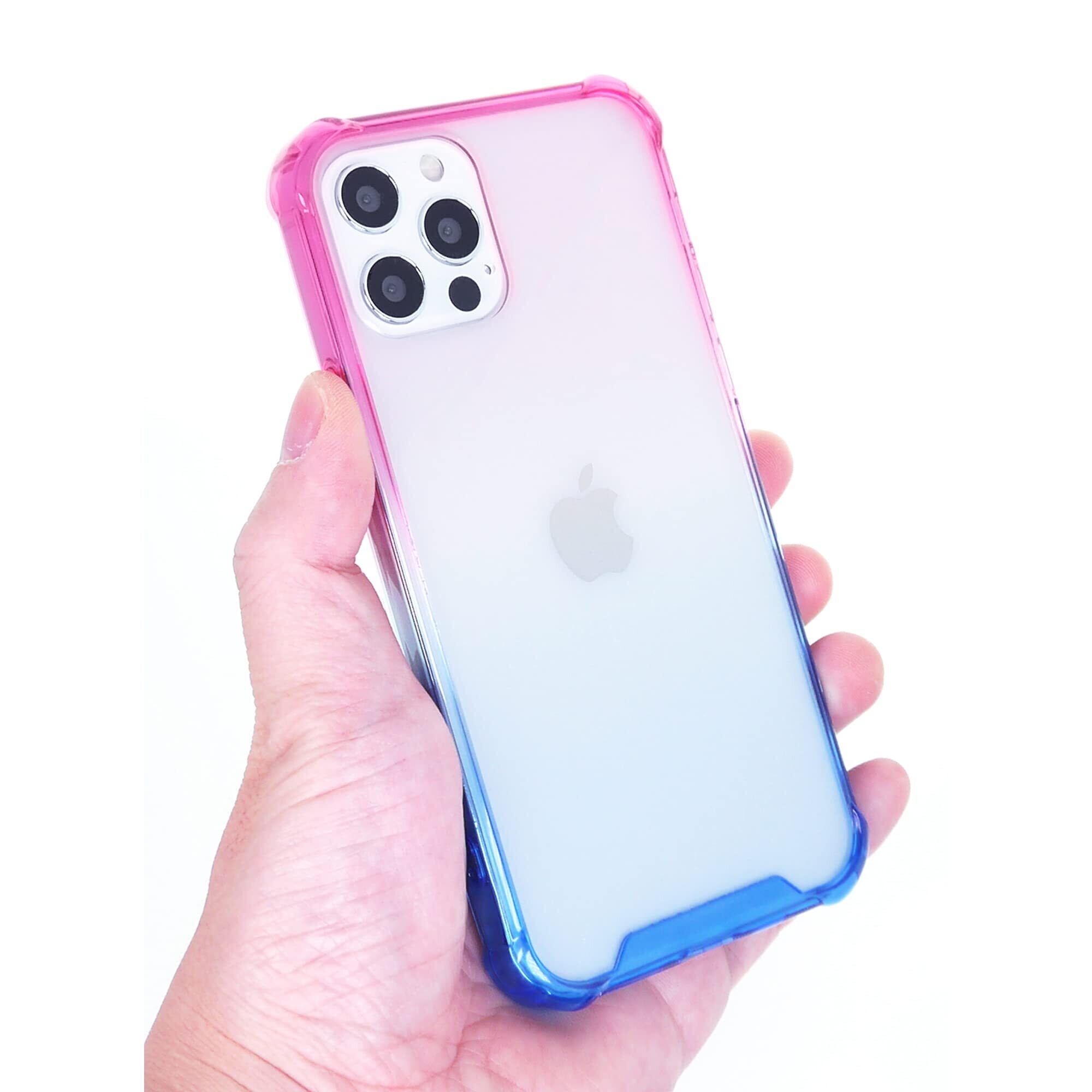 iPhone 12 Miniケースカバー、極薄アーマー、四隅の衝突防止クッション保護、耐衝撃性5.4吋 - ピンク青