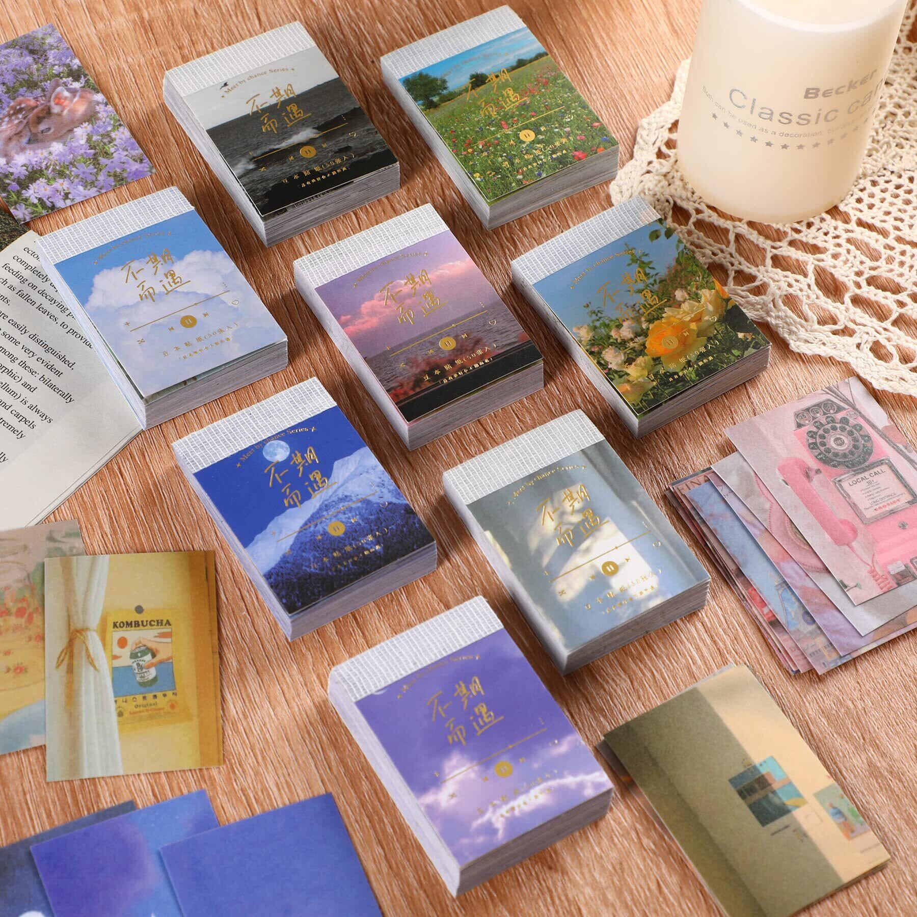 SANNIX 8冊 フレークシール コラージュ 素材 シール 400枚 手帳 ステッカー 花 シール 大量 ノート カレンダー スクラップブック スケジュール 美しい景色