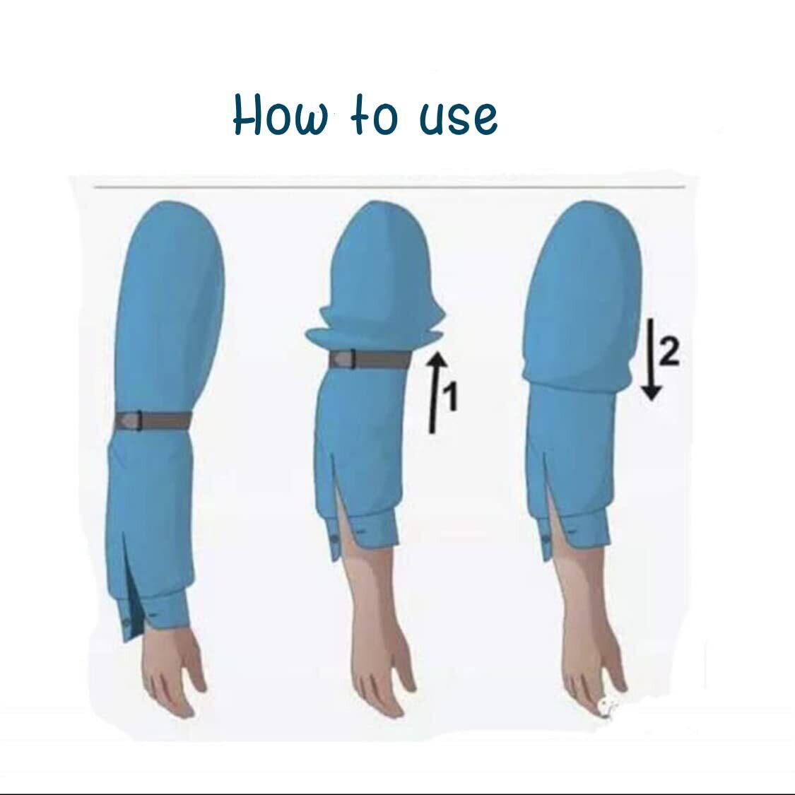 バネ仕掛けのアームストラップにより、袖の長さを簡単に調整できます。内径:約7cm、幅:約1cm。 スプリングループタイプで、最大41cmまで伸ばすことができます。