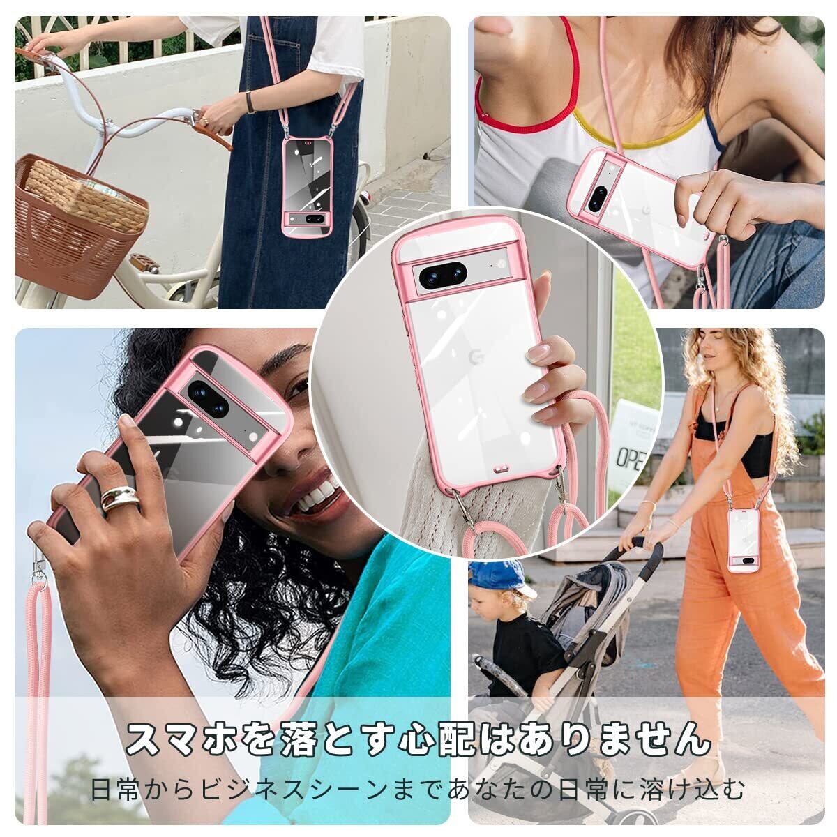 Google Pixel 7a ケース クリア ショルダー ストラップ付き グーグル ピクセル7a カバー 透明 肩掛け 斜めかけ TPU シリコン メッキ加工 耐衝撃 全面保護 薄型 韓国 可愛い 縄掛け スマホケース (ローズゴールド) | BASE SHOP