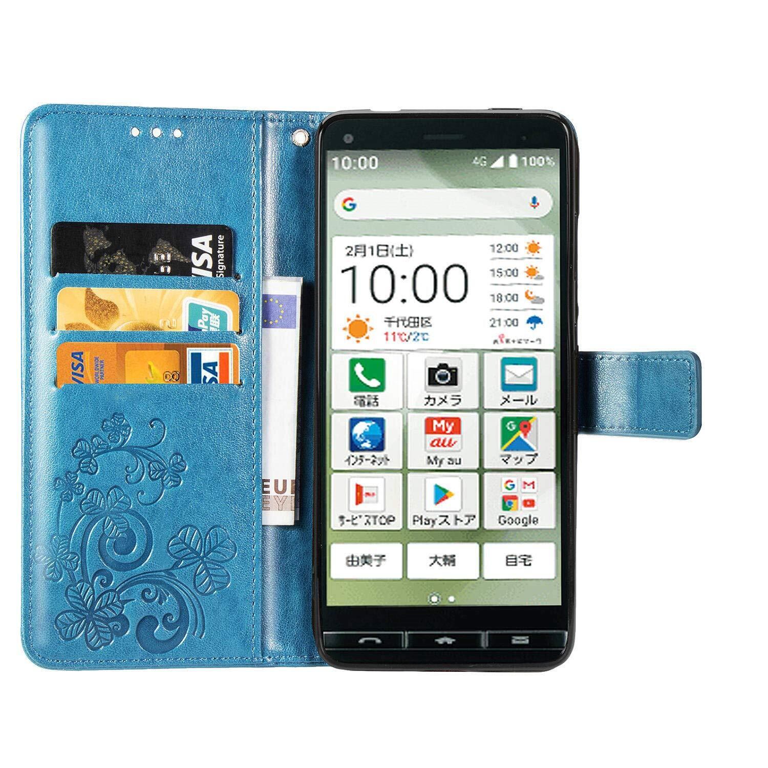 対応京セラ BASIO4 KYV47 BASIO 4 ベーシオ4 かんたんスマホ2 A001KC ケース 手帳型 ノートブック型携帯電話保護カバー多機能携帯電話ホルスター財布携帯電話ホルダーバンプパターンテクスチャ耐久性摩擦耐性携帯電話ケース男性と女性に適した多色オプション (四つ葉のクローバーブルー)