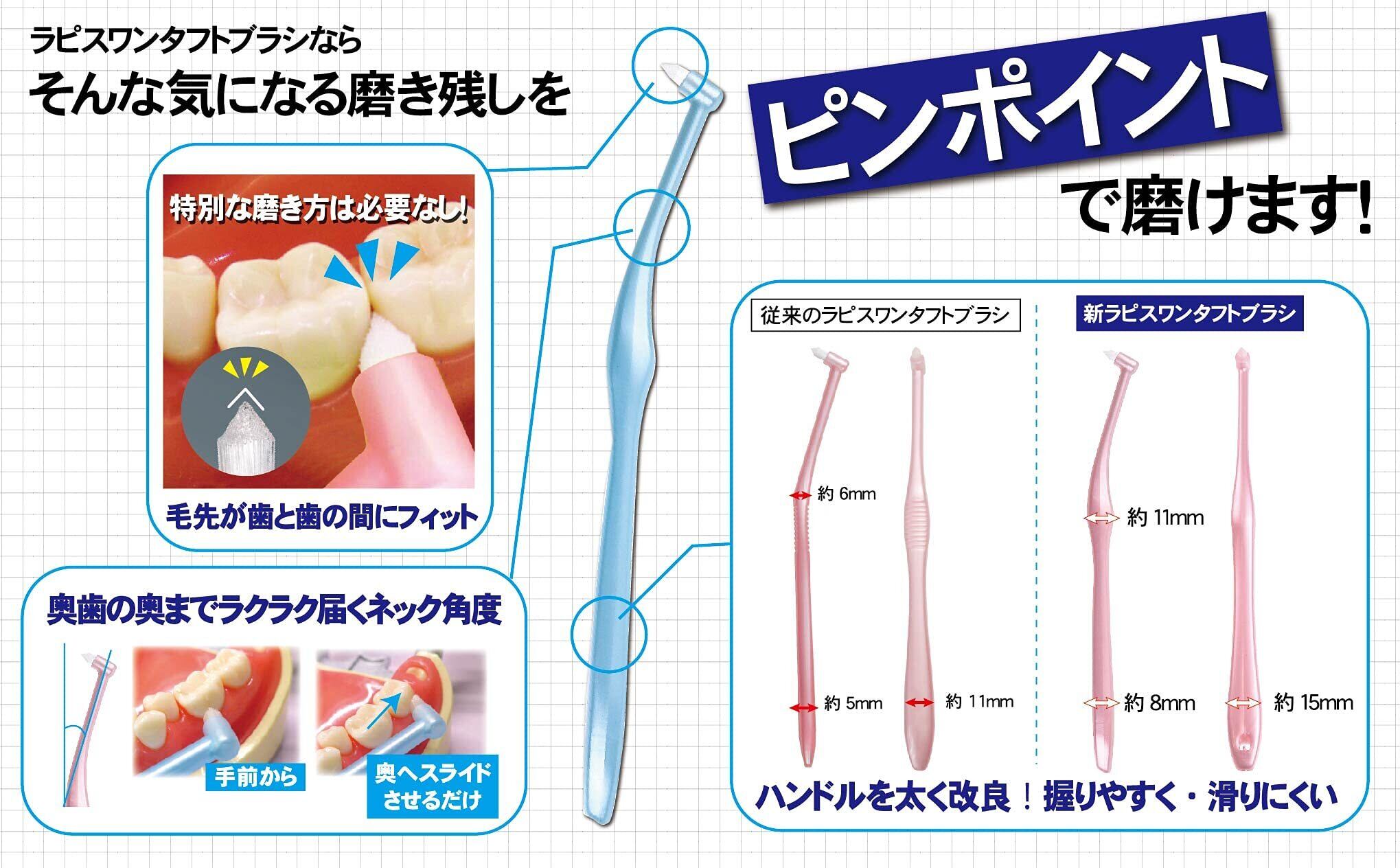 L APIS:歯科専用 ワンタフトブラシ 部分磨き 矯正用 スウェーデン式 グッドデザイン賞受賞 ふつう アソート 7本 キャップ1個付