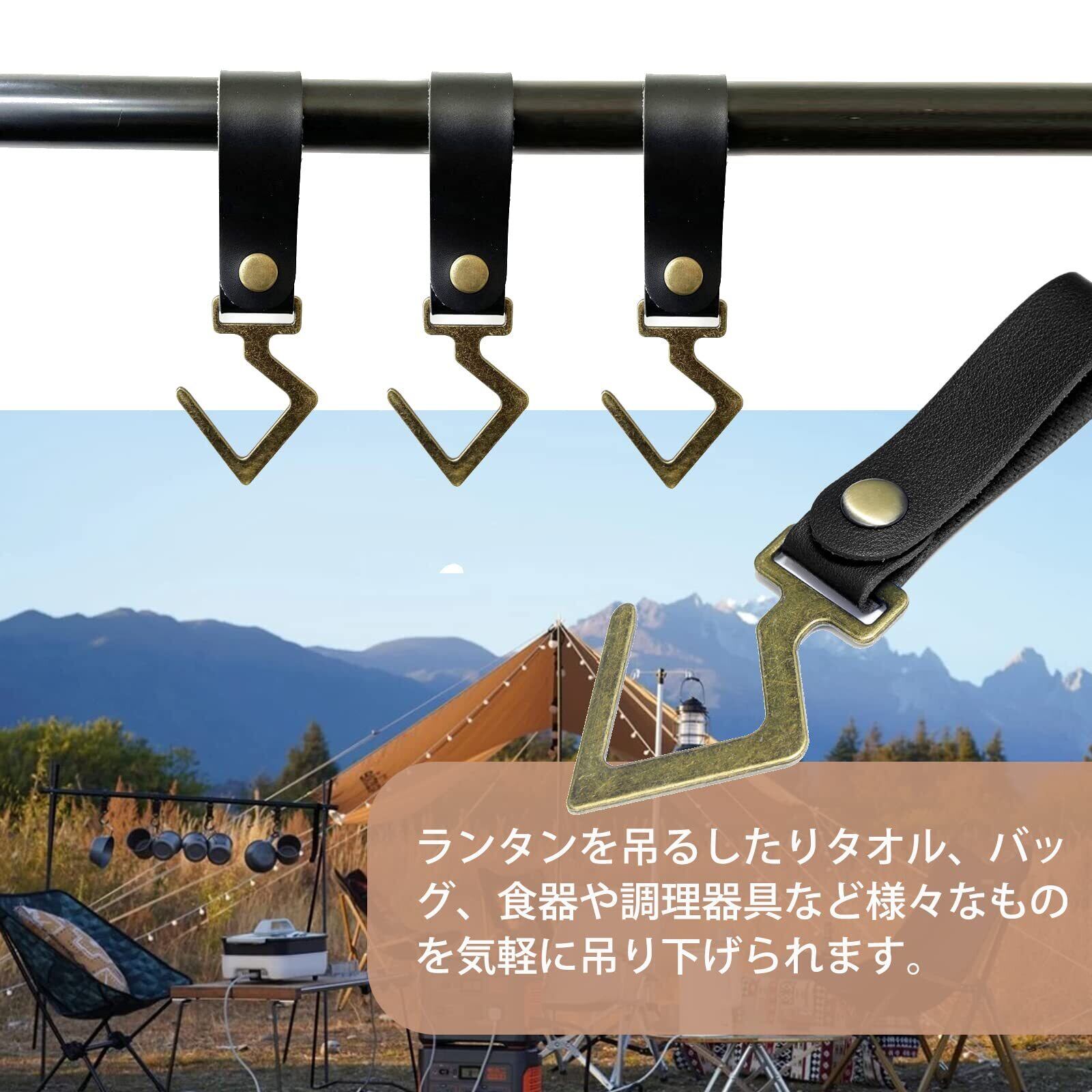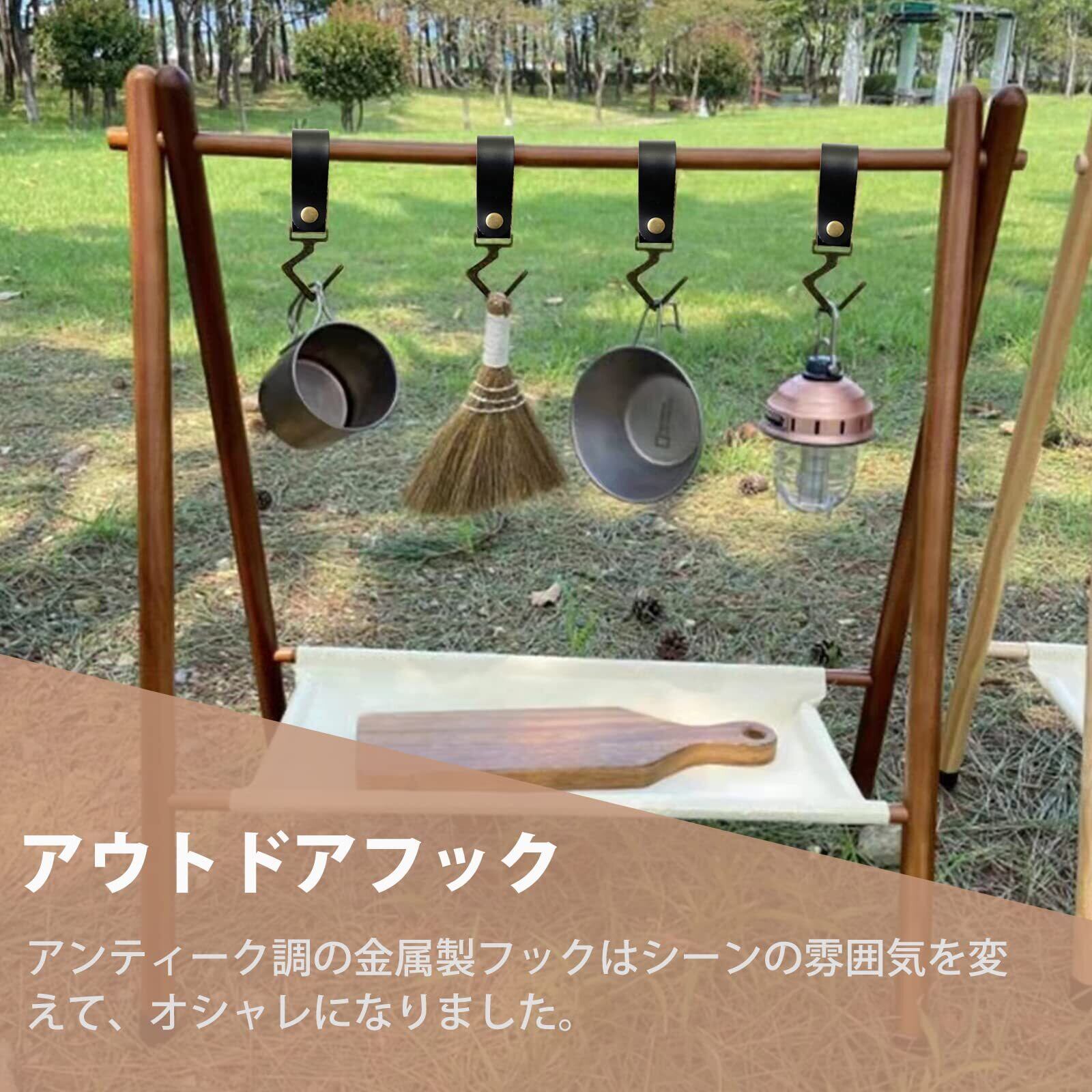 PUレザー製 ランタンフック 金属 フック キャンプ アウトドア ハンガー 吊り下げ S字フック ライト 調理器具 キッチン 野外 収納 整理 テントポールフック ランタンハンガー 多機能 ランタンスタンド 組み立て簡単 ハンギングラック