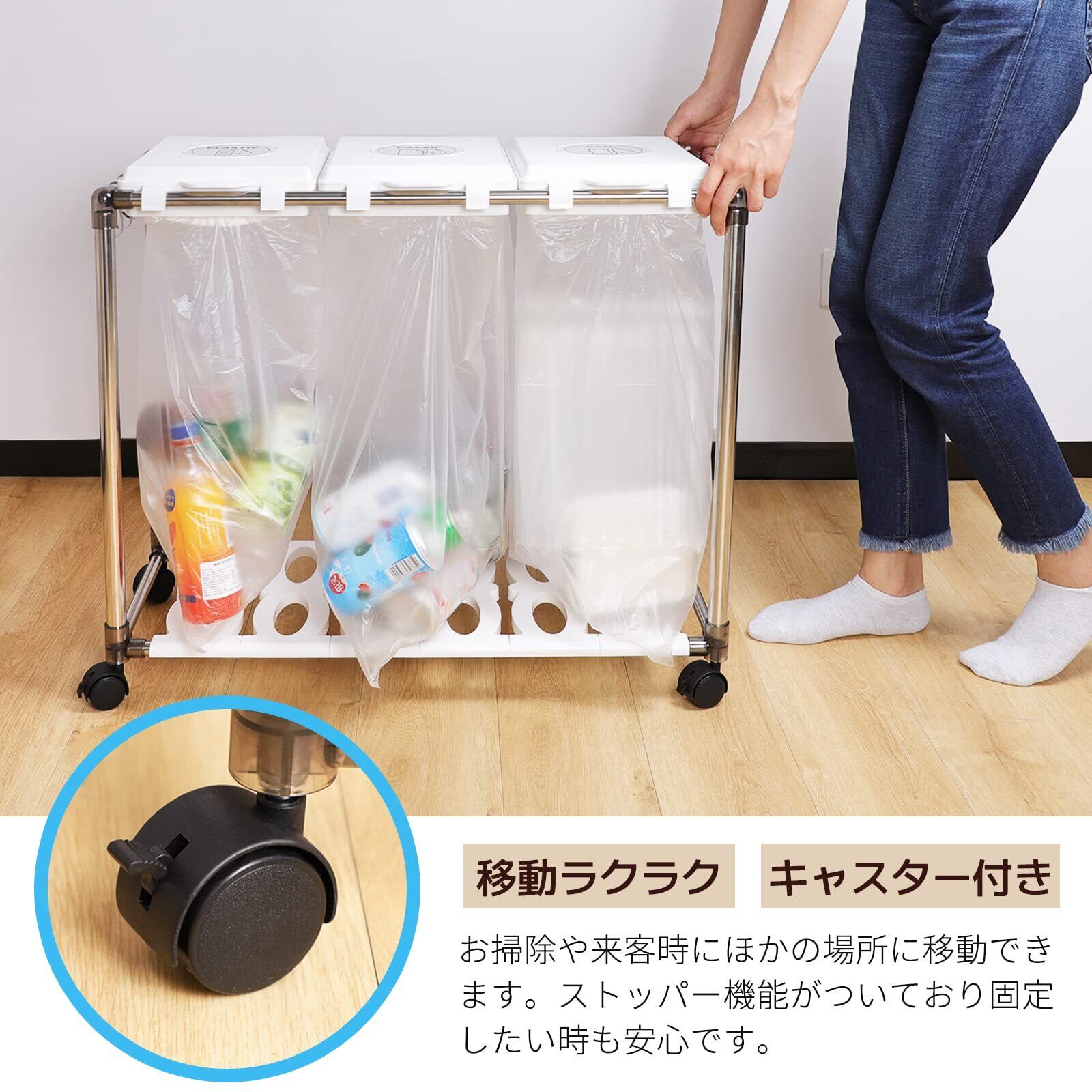 【30L×3分別】ゴミ袋ホルダー 分別 ゴミ箱 キャスター付き 20L~30L袋可 ごみ箱 ダストワゴン 蓋付き ゴミ袋スタンド スリム 縦開き おしゃれ ダストボックス レジ袋 ポリ袋 エコ ステンレス製 分別シール付 | BASE SHOP