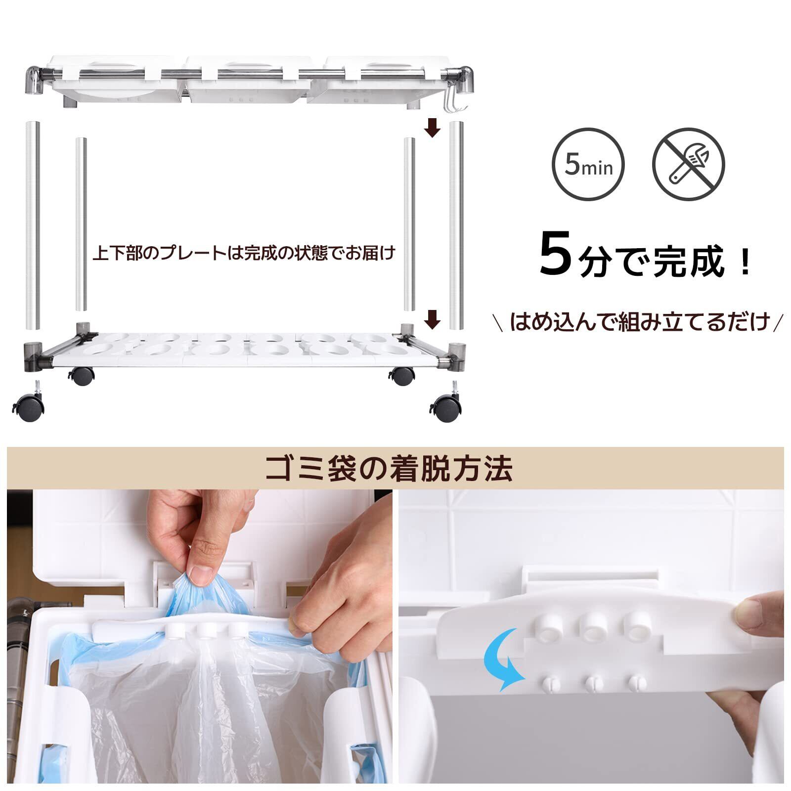 【5分完成!かんたん組み立て】✨上下部のプレートは完成の状態でお届けします。ネジを使わないから5分で完成!各パーツをはめ込んで組み立てるだけです。ごみ袋の装着も簡単:ごみ袋を挟んで蓋内部にあるスナップでとめればセット完了です。Point:スナップをとめるには、パイプを握らず、蓋の外縁を握ることでうまくスナップをとめることができます。※取説で組み立て方の動画付き迷わずお使いいただけます。