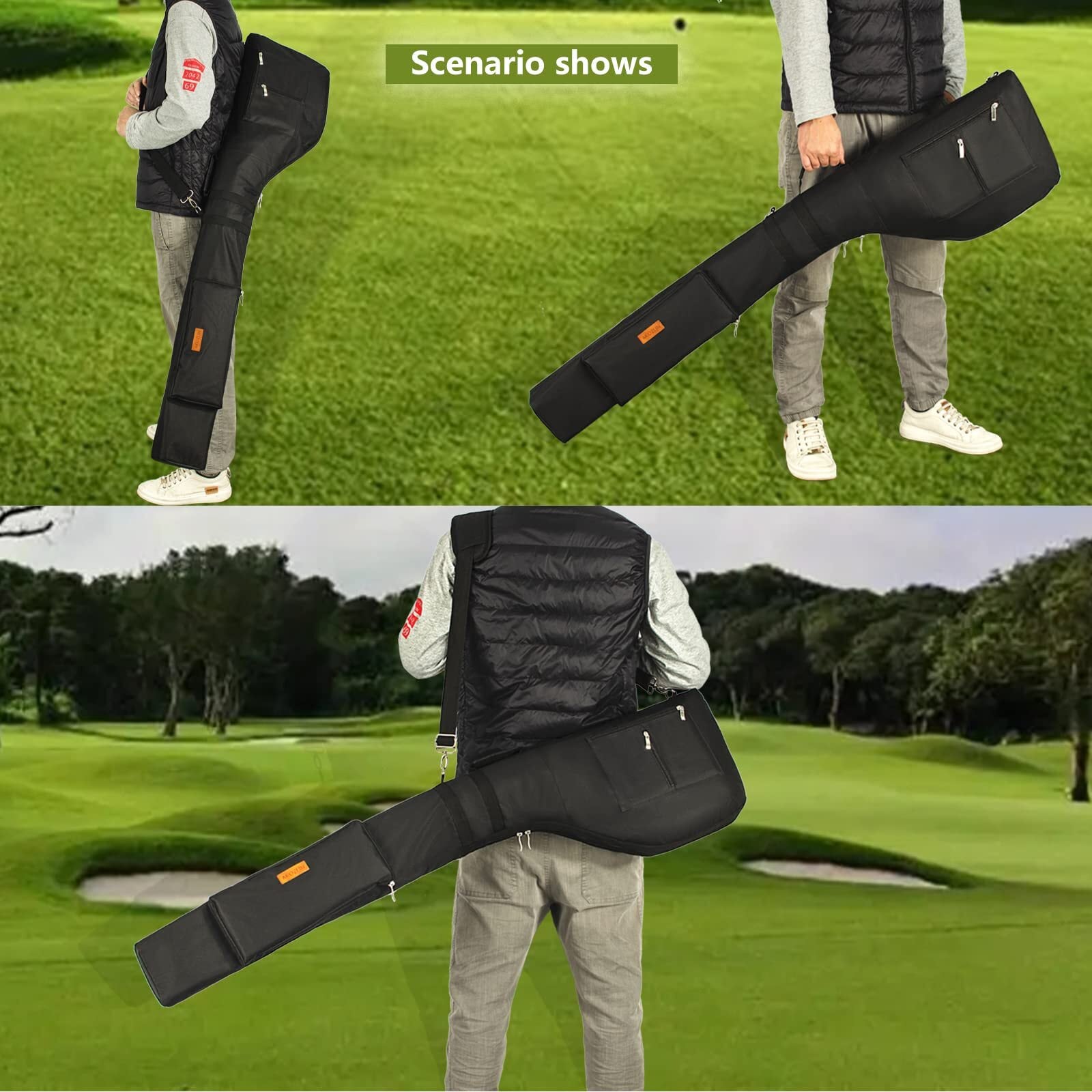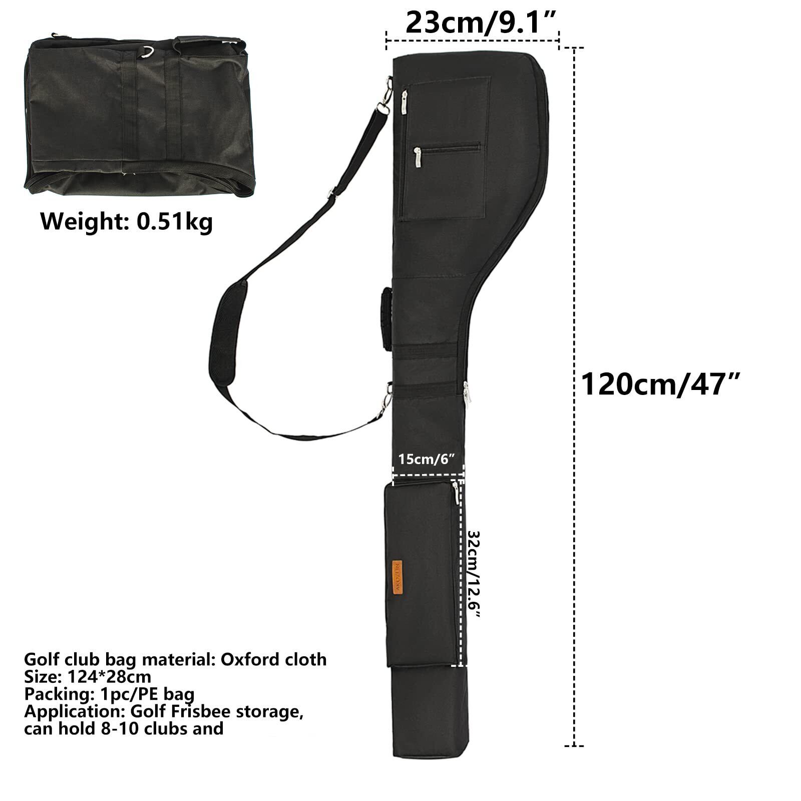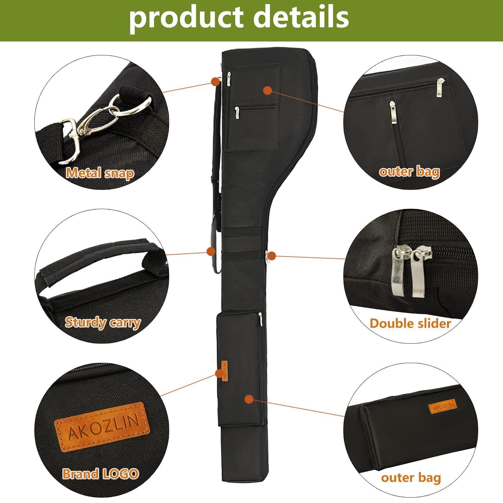 AKOZLIN ゴルフ クラブケース 8〜10本以上 軽量 ゴルフバック 3ポケット付き ソフトクラブケース 折りたたみ 練習用 大容量 コンパクト収納 オックスフォードクロス ブラック