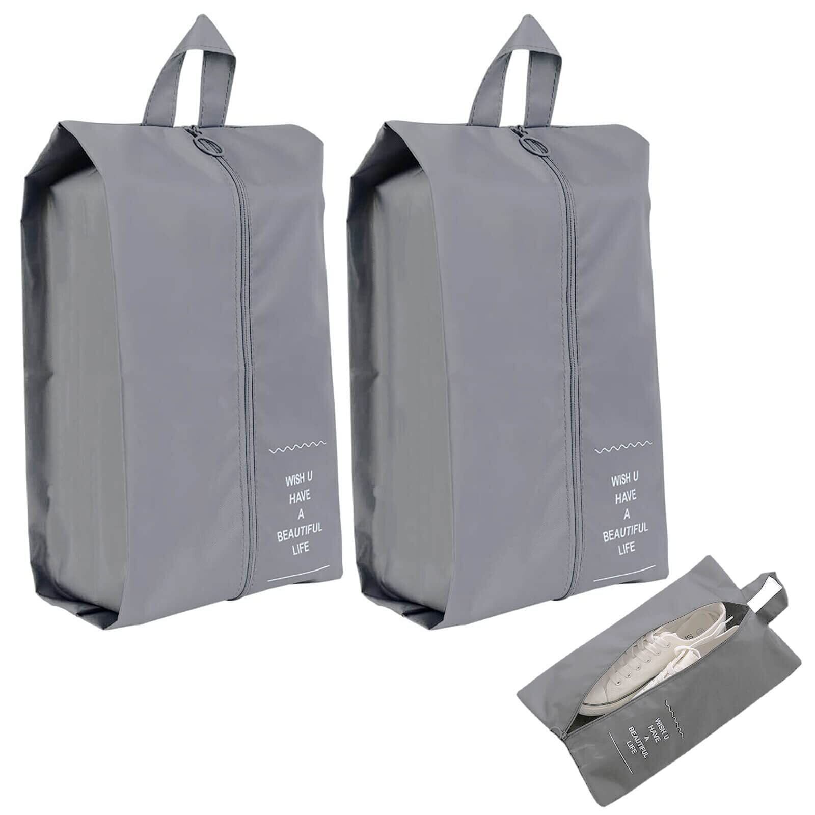 シューズバッグ 防水 2セット オーバーニーソックス 防水防塵防臭 スポーツ 超軽量 靴入れ袋 衣料品 化粧品 靴収納 学校 家庭用 男女兼用 アウトドア 出張 旅行 ゴルフ スニーカー 小物入れ 収納袋 シューズ入れ 靴収納ケース 携帯便利 (グレー)