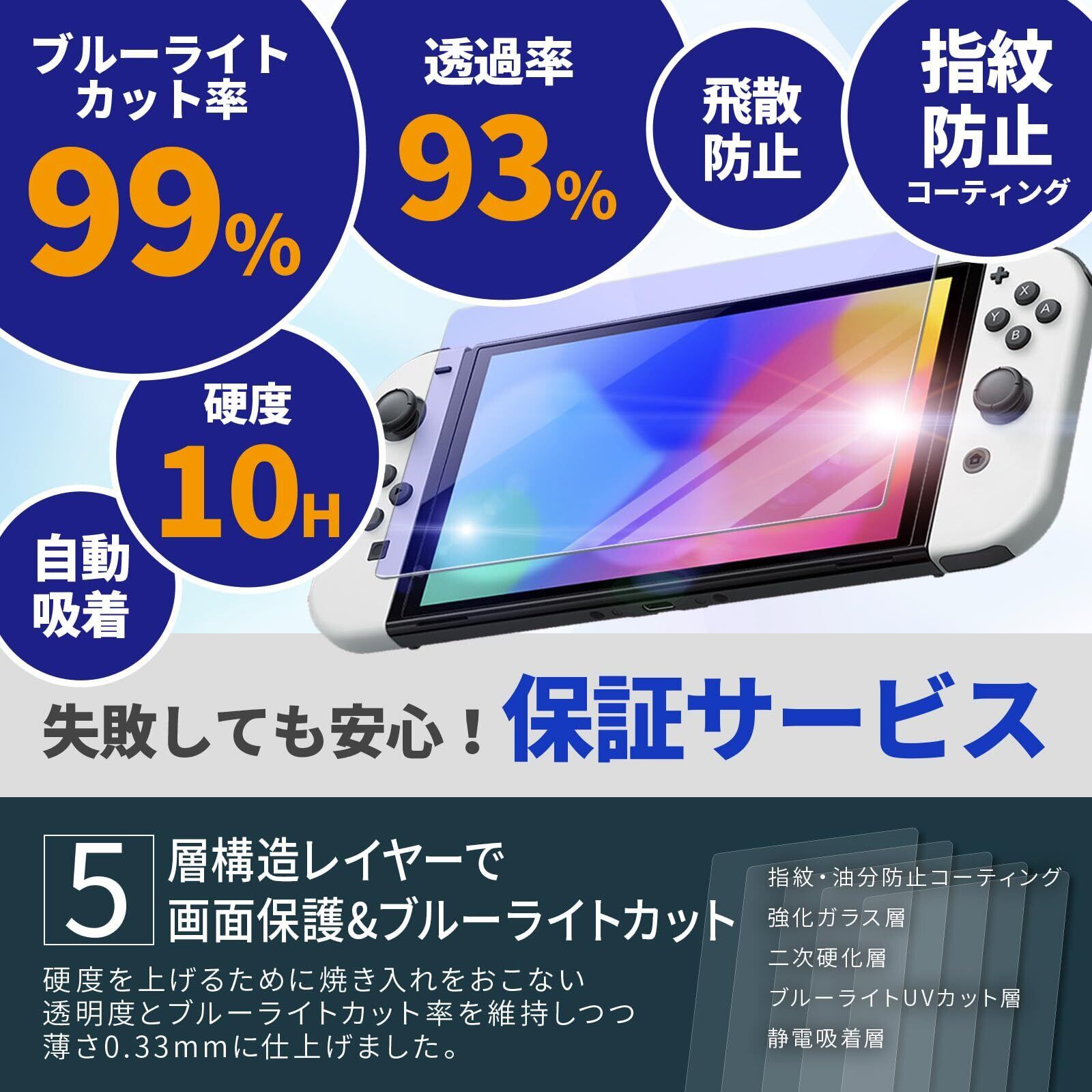 switch 用 フィルム ブルーライトカット +UVカット 99% 画面 本体 保護 目に優しい 高硬度 保護 ガラス フィルム 指紋防止 ゲーミング