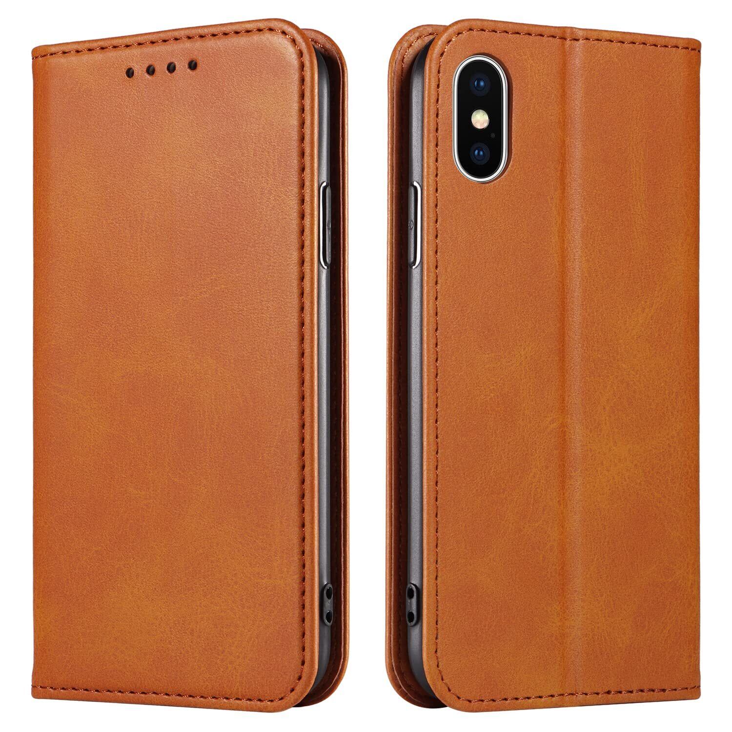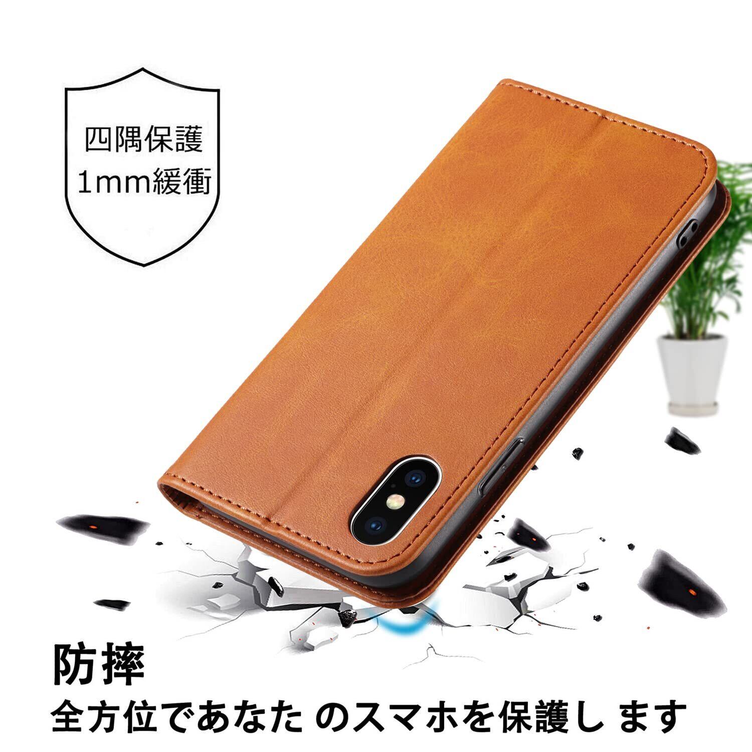 iPhone X ケース iPhone XS ケース イフォンX/XS ケース スマホケース 手帳型 携帯カバー レザー 耐衝撃 軽量 着脱しやすい 放熱性 マグネット式 カード収納 スタンド機能 iphone ケースX/XS 対応 360度保護 PinLiSheng (カーキ色, iPhone X/XS)