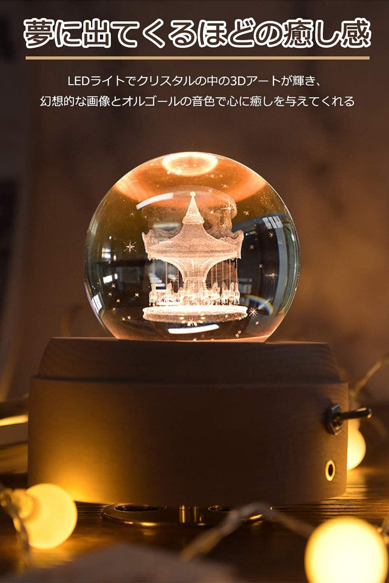 【夢に出てくる癒し感】LEDスタンドに乗せるとクリスタルの中の月が光り輝き、オルゴールの上に綺麗な花の投影も出て、幻想的な画像とオルゴールの音色で夜を素敵に演出してくれます