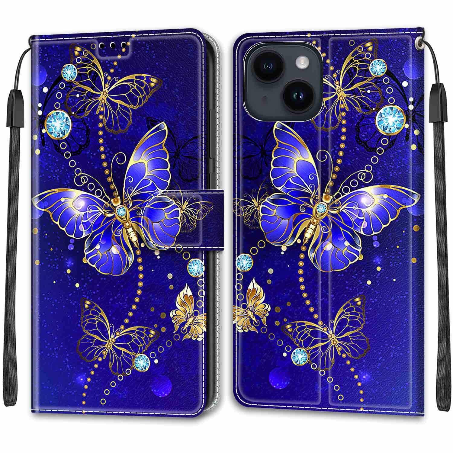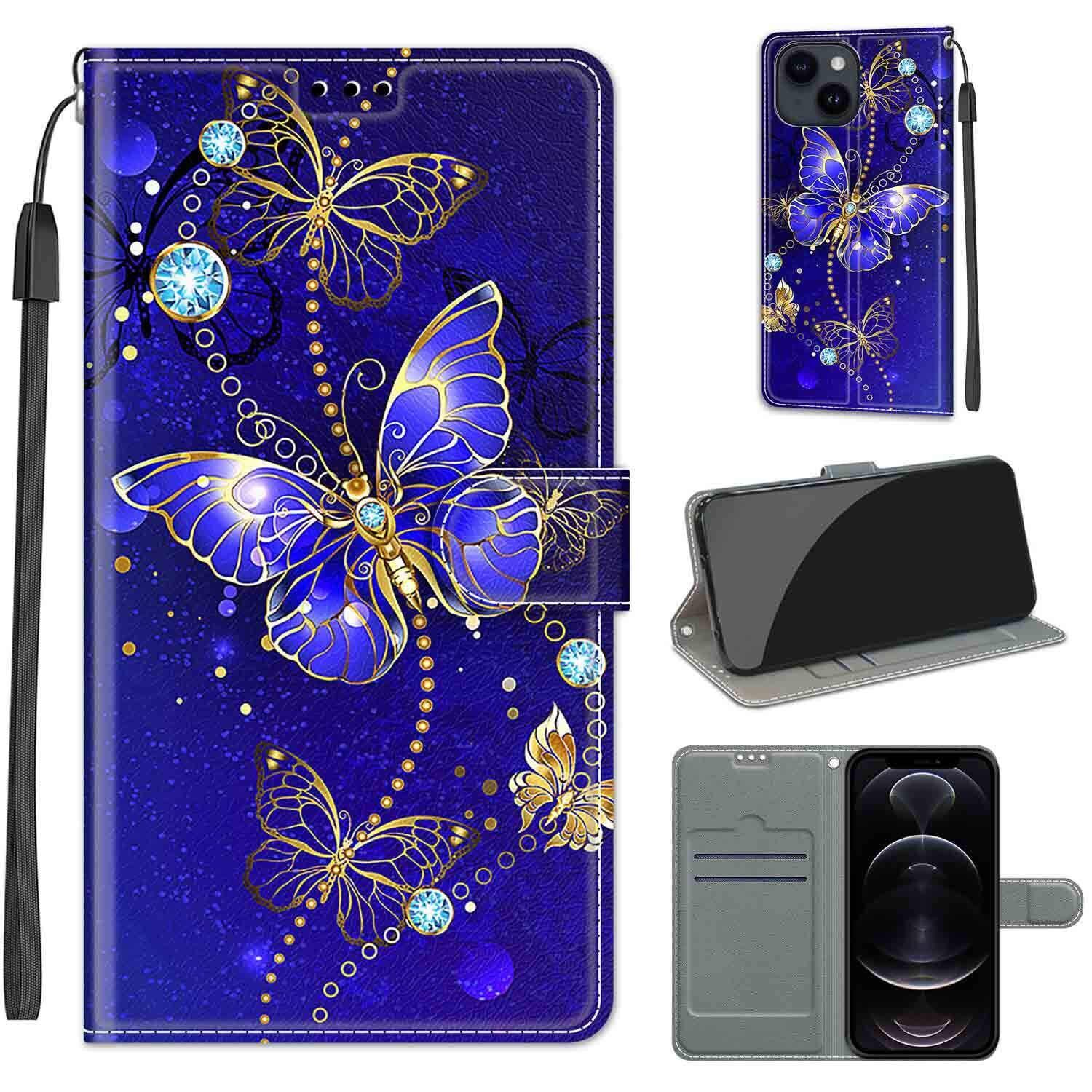 KENHONER iPhone 14 / 13 ケース手帳型 13 スマホケース 携帯カバー レザー 耐衝撃 耐摩擦 全面保護 マグネット式 カード収納 スタンド機能 手触りが良い 人気 上質 6.1インチ対応 青い蝶