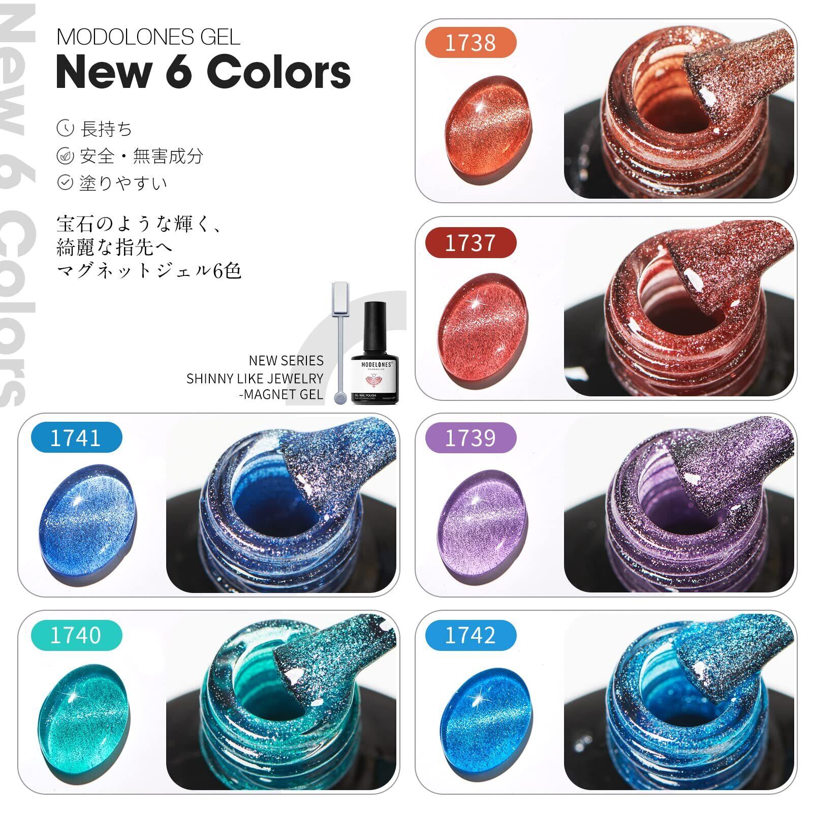 Modelones ジェルネイル マグネットジェル キャッツアイジェル 6色セット ギャラクシー キャンディー カラージェル 猫目 キャツアイ UV・LED対応 ポリッシュタイプ セルフネイル