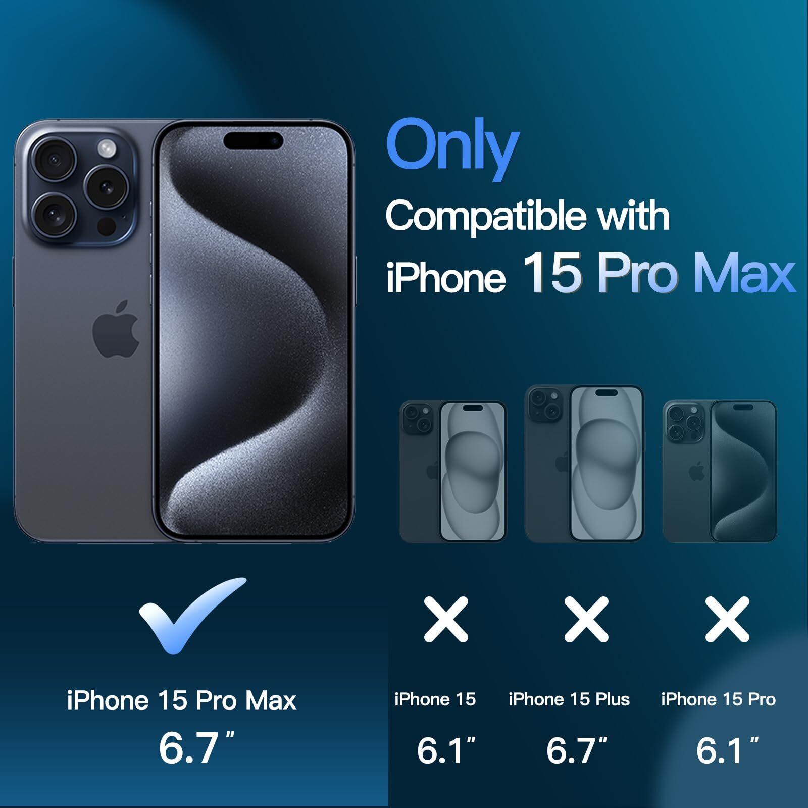 [ぴったりフィットする設計] iPhone 15 Pro Max 6.7インチにのみフィットします。ワイヤレス充電にサポートします。完璧に位置合わせされたカットアウトにより、スピーカー、カメラ、ボタン、その他の機能に簡単にアクセスできます