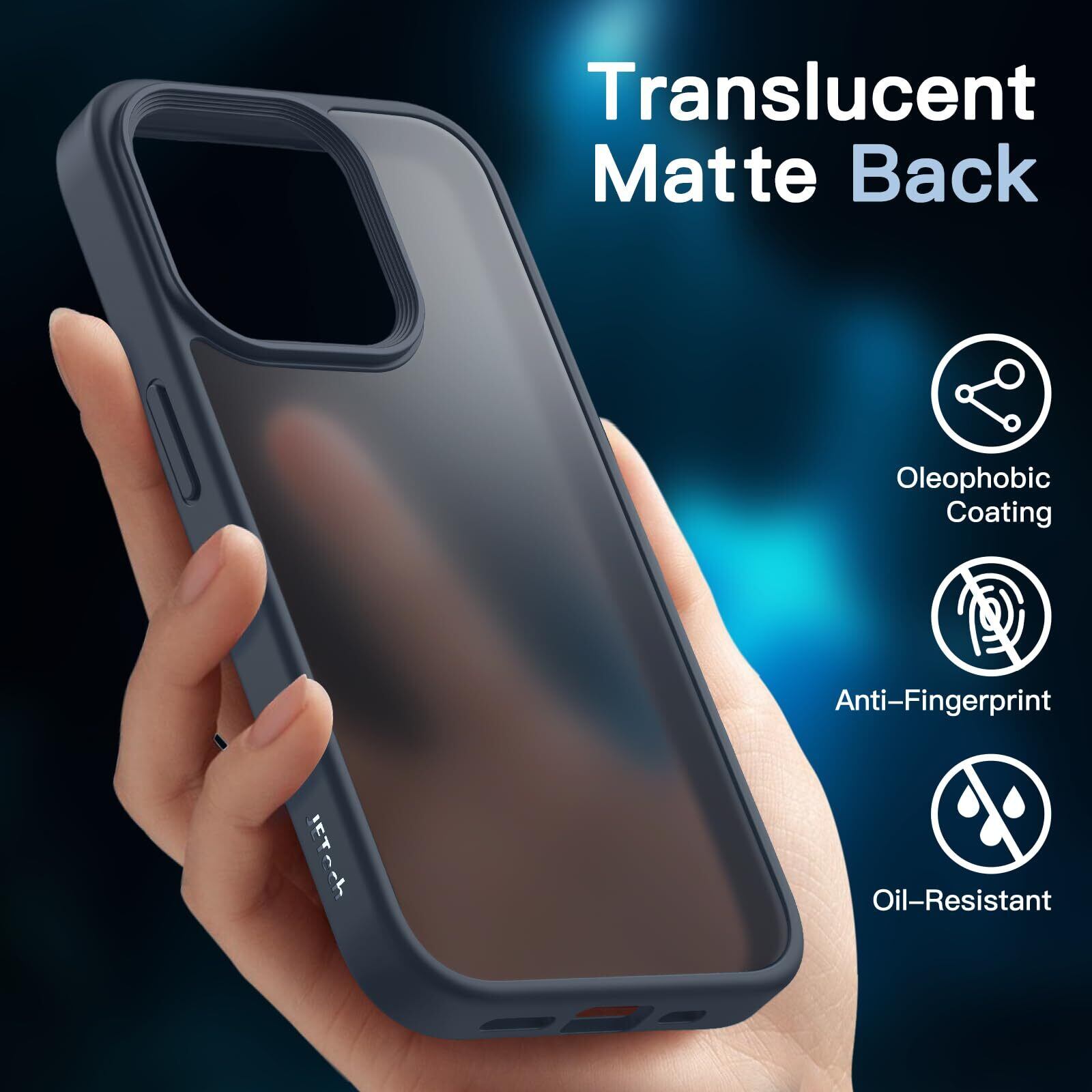 JEDirect 5 in 1 iPhone 15 Pro Max 6.7インチ用 マットケース 2枚強化ガラスフィルム+2枚カメラレンズフィルム付き 5枚セット 半透明背面 耐衝撃スマホカバー