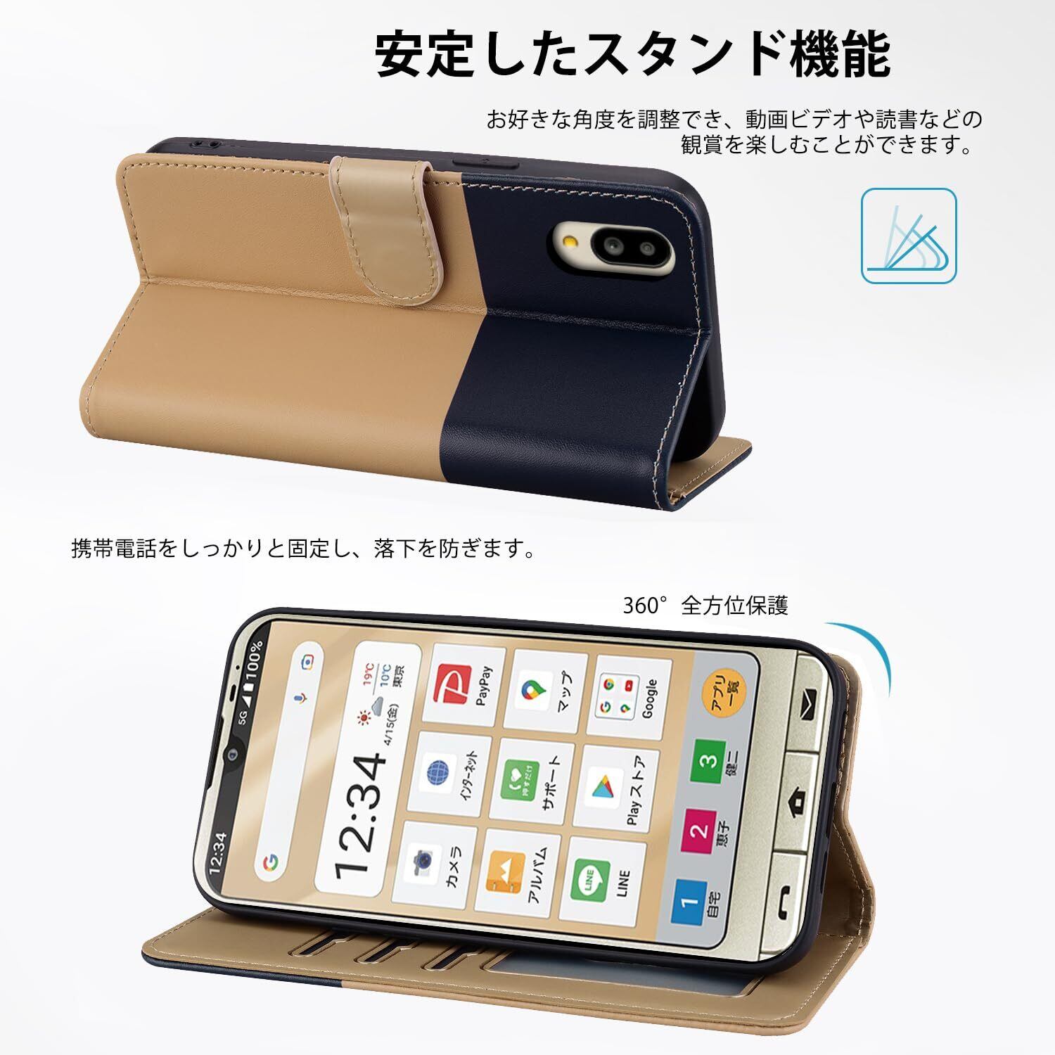 【スタンド機能 とマグネット式】:Sumaho6 携帯カバーはブラケット機能が付いており、好きな角度に合わせて動画を見たり読んだりして、両手が解放さ、長時間での新幹線、飛行機の中での暇つぶしに最適ですよね。また、シンプルスマホ7/シンプルスマホ6 財布型 カバー マグネット式吸着閉鎖され、より隠蔽されて安全である。ストラップ穴のデザインは、携帯電話を持ち歩く方法をより多く提供します。