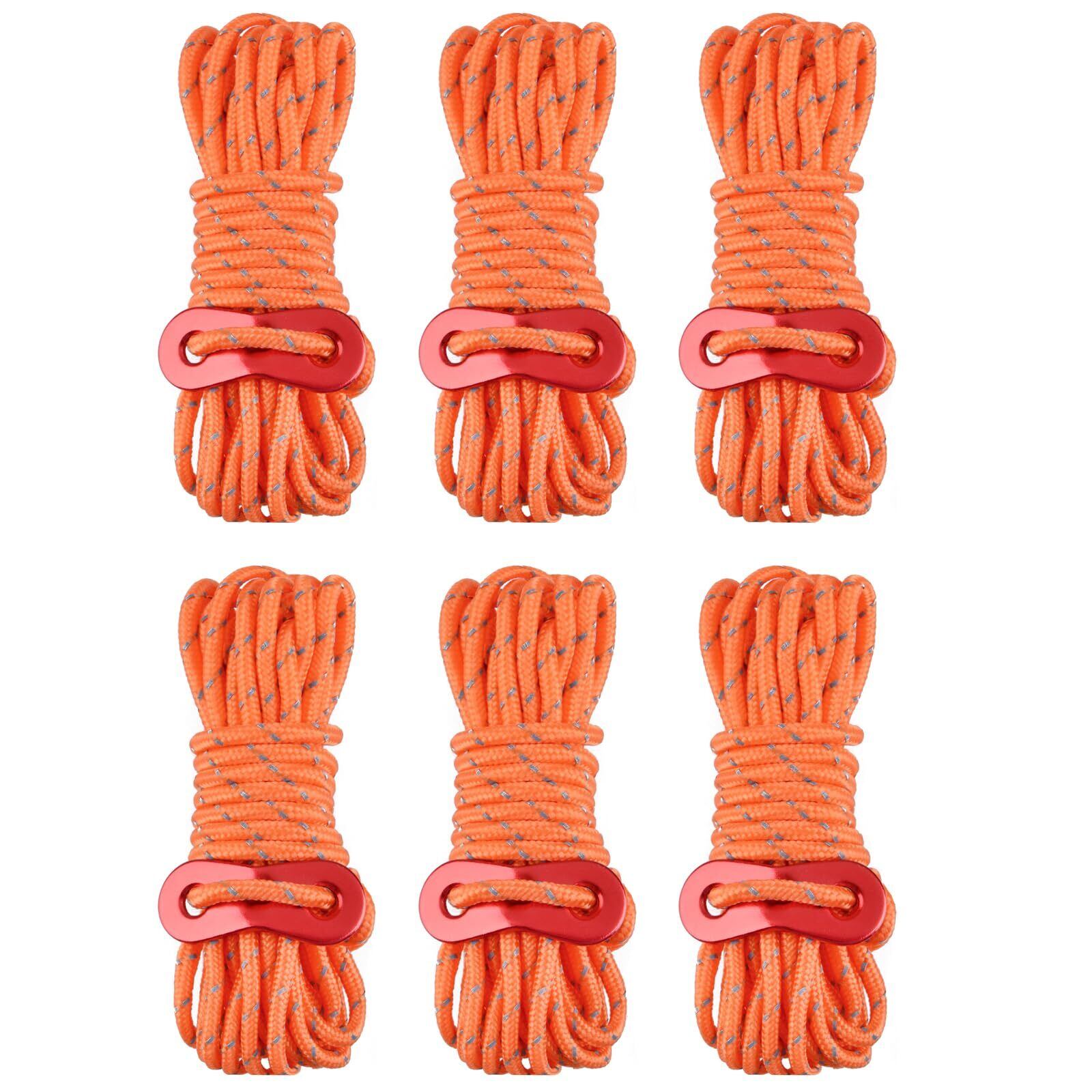 TRIWONDER ガイドロープ 反射材入り 3mm 4mm パラコード テントロープ テント/タープ用 ロープ ガイライン キャンプ タープ 自在金具付き