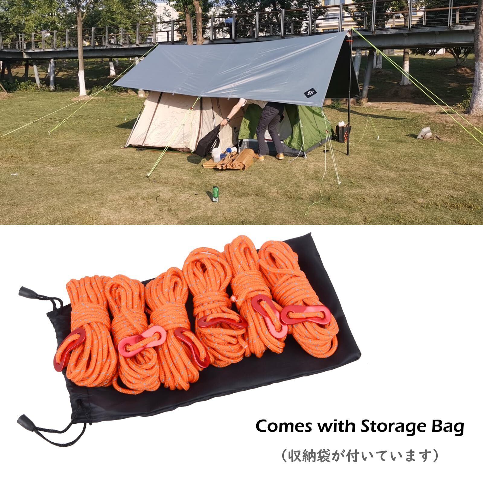 【セット内容】径4mm・長さ4Mのロープ x 6本、自在金具 x 6個、収納バッグ