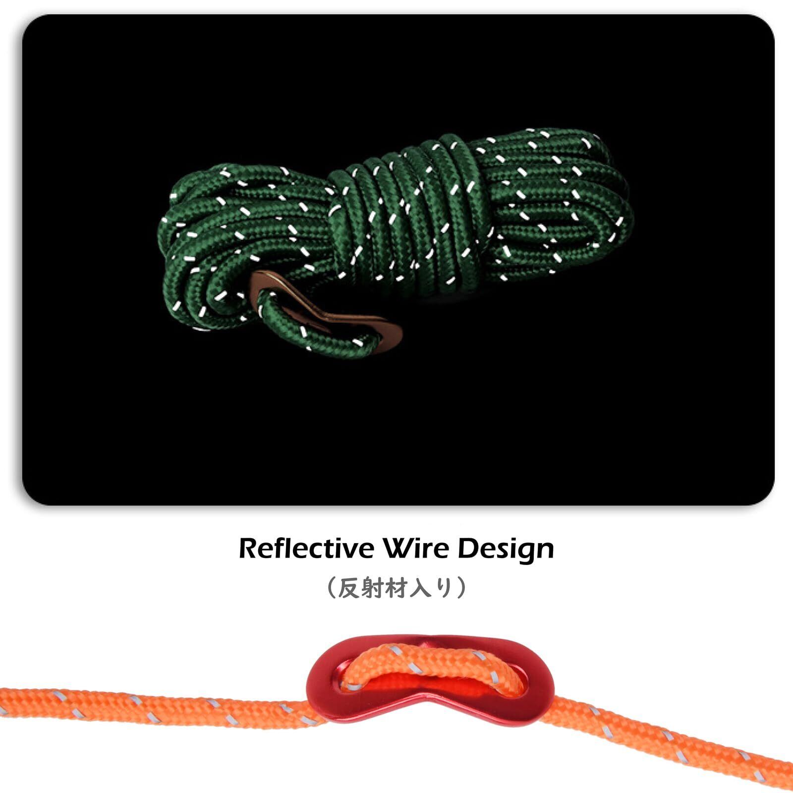 【ガイロープ】-- 頑丈な素材を採用、しっかりしています。夜間の視認に効果的な反射素材入りテントロープで、視認性を高めます、足を引っ掛けることもご心配なく