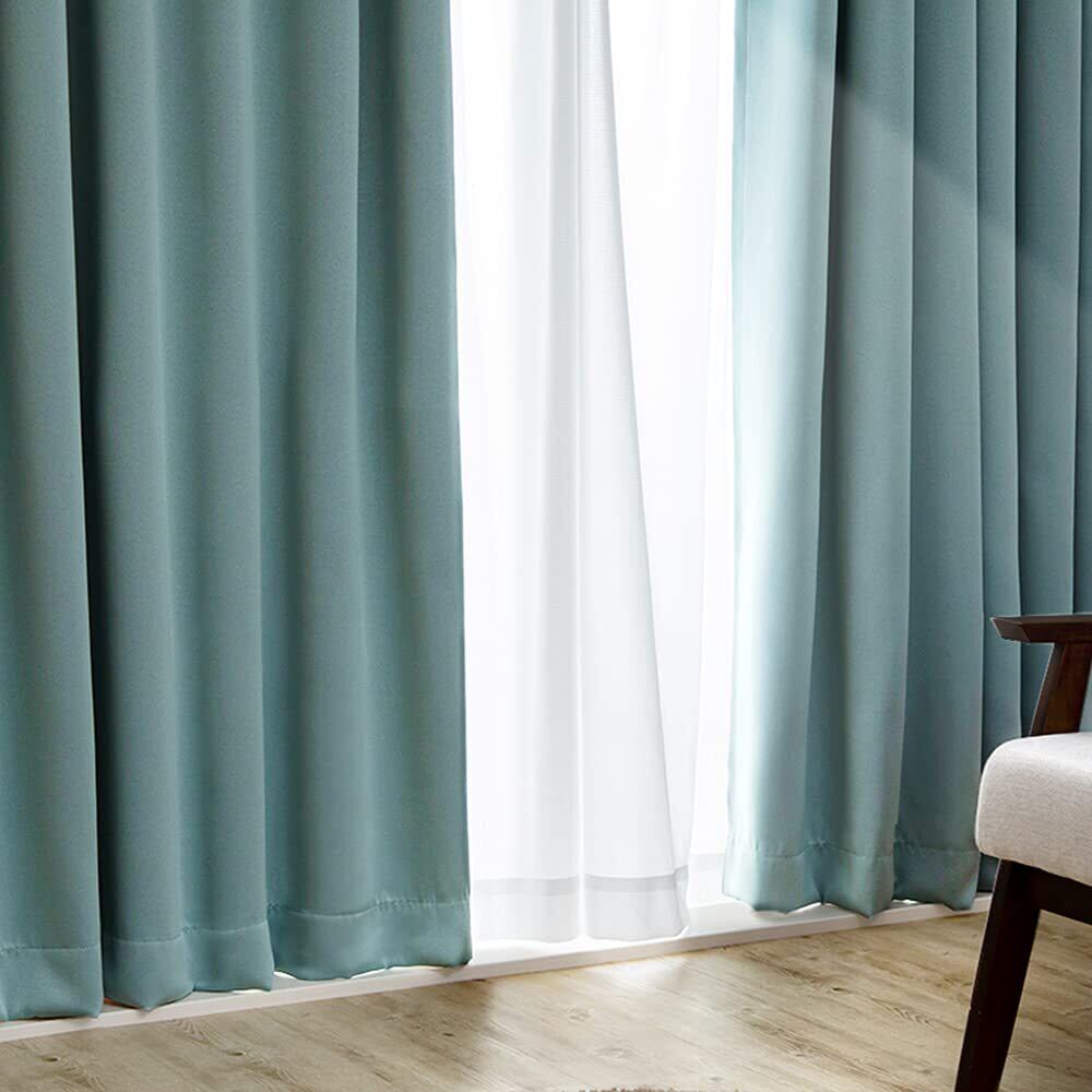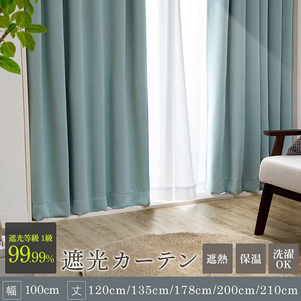 アイリスプラザ 遮光度99.99%カーテン 幅100×丈200cm 1級遮光 タッセル付き しっかり厚手 節電&省エネに 断熱/防寒 洗濯機OK 2枚組 ブルーグリーン