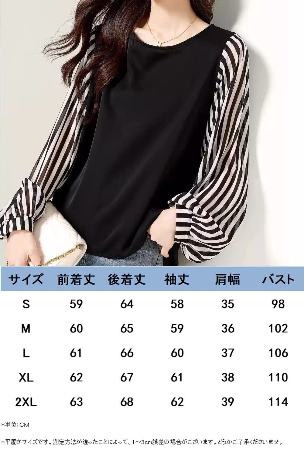 [H.zroy] ブラウス レディース トップス シフォン Tシャツ 長袖 ゆったり 丸首 プルオーバー ストライプ 切り替え おしゃれ 春 夏 秋