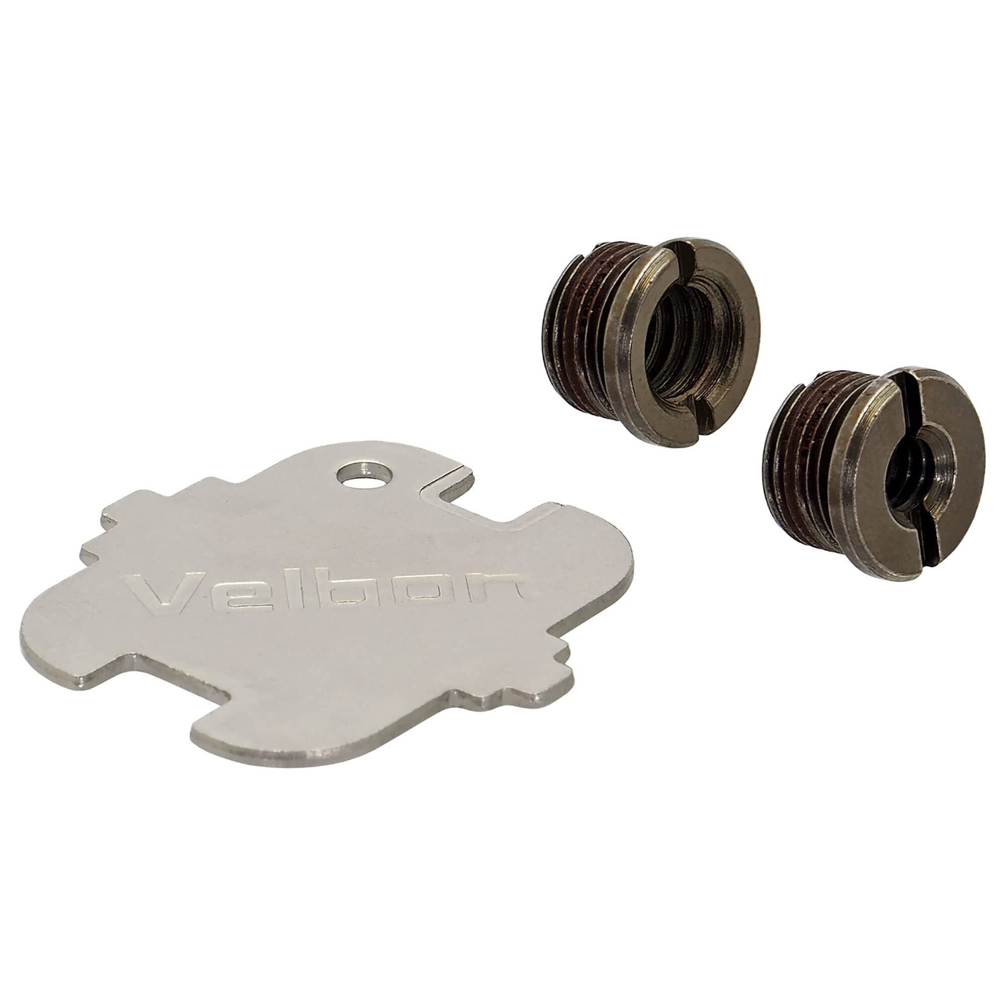 Velbon(ベルボン)製の雲台およびアクセサリーの三脚取付ネジ穴のサイズ「UNC1/4(細ネジ)」「3/8(太ネジ)」を相互変換できる、止めネジアダプターと専用ドライバーのセットです。