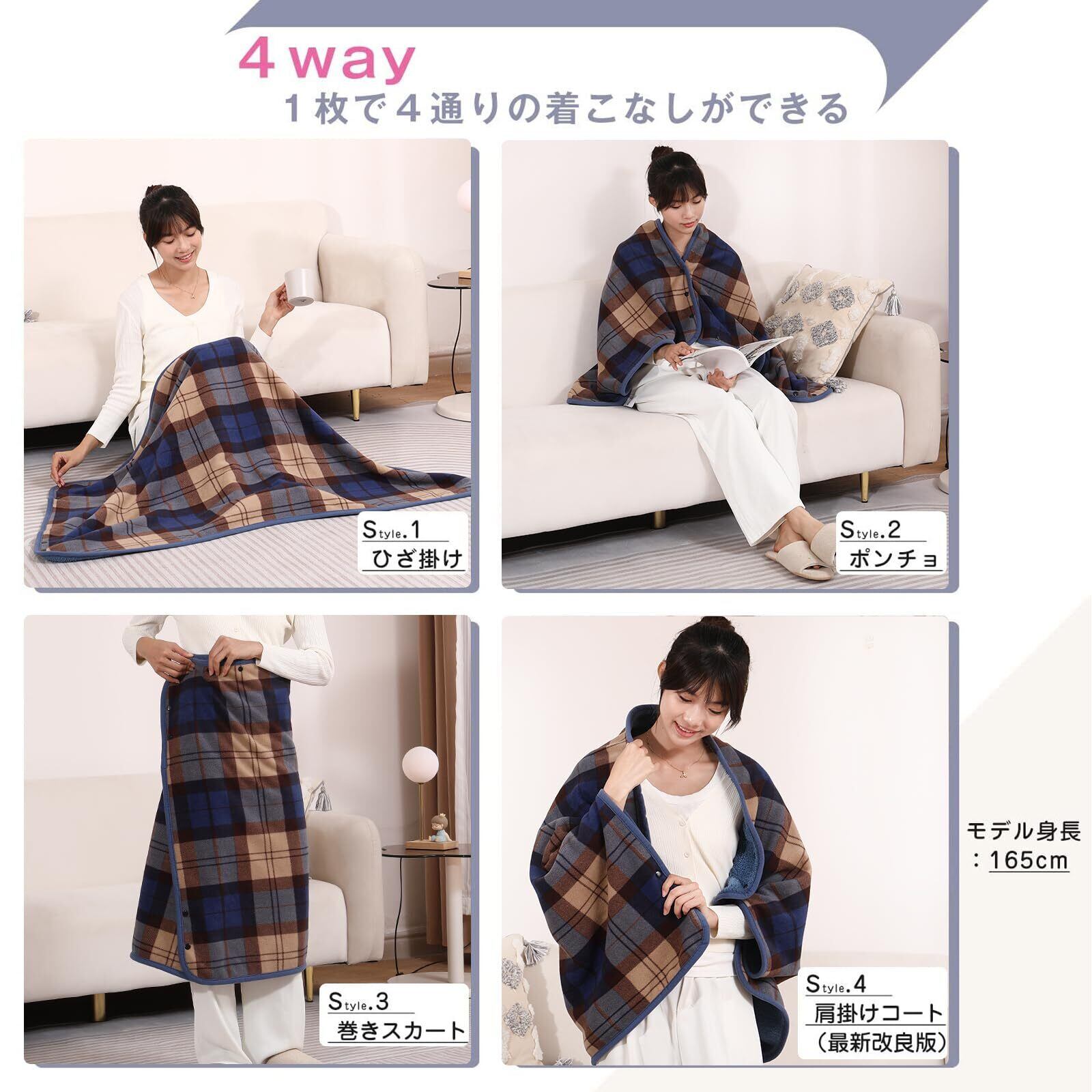 【2023最新版デザイン・ボタン付き&多機能なブランケット】HAPGO ひざ掛けだけのデザイン:そでは2つのボタン付きになっているデザインで、ボタンを留めて外からの冷気をシャットアウトし、体温の暖かさを逃がしません!!!むねは4つのスナップボタンが付いているので、自分の体に合わせてサイズを簡単に調節して着ることができます。ひざ掛け、ポンチョ風、巻きスカート風、ボレロ風、1枚で4通りの着こなしができる。※意匠登録番号:1694949
