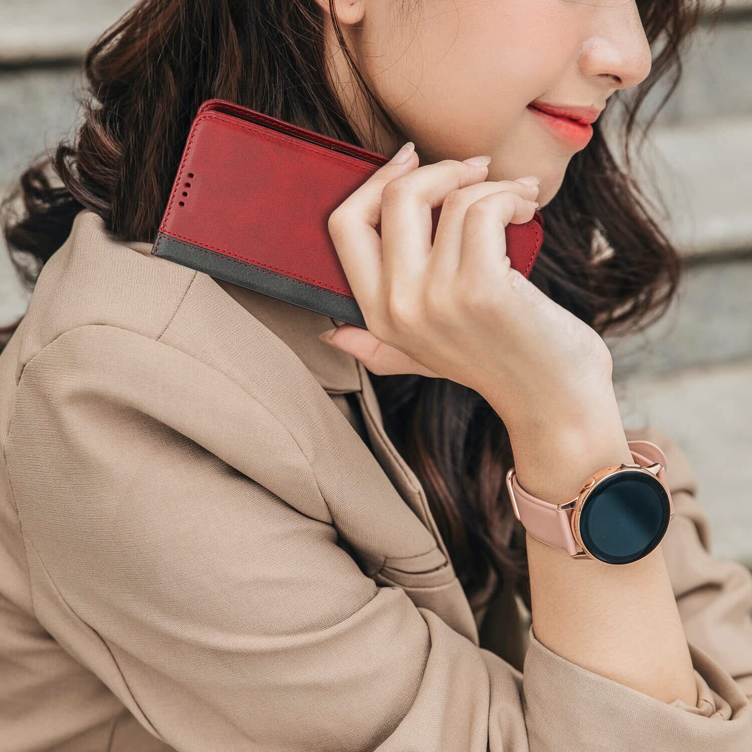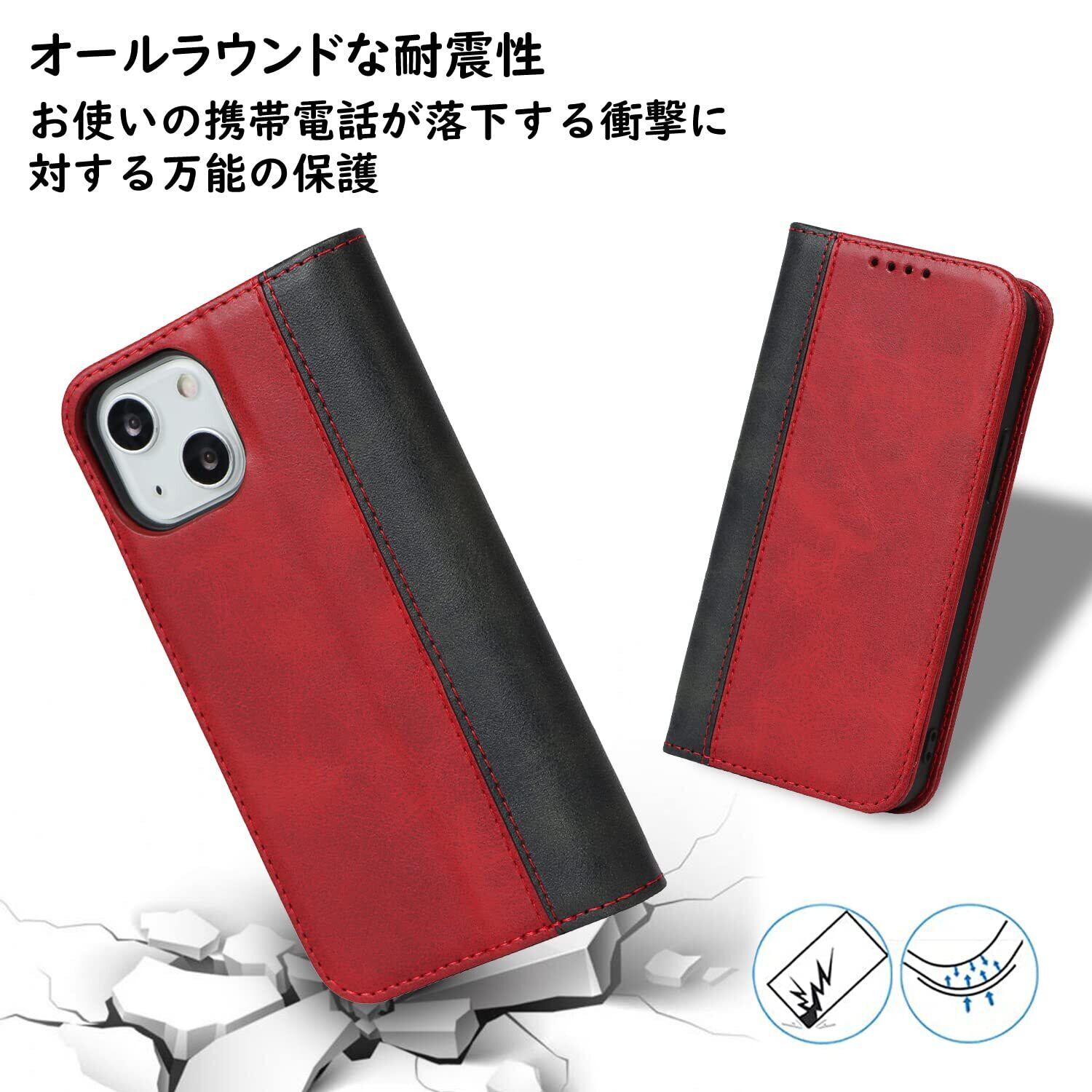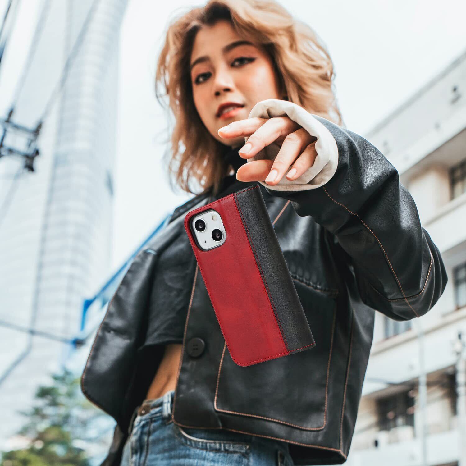 Havaya iPhone13ケース iPhone14ケース あいふぉん13ケース スマホケース iphone 14 手帳型 耐衝撃 カバー マグネット カード収納(アイフォン13 /あいふぉん13/いphone14/アイホン14 6.1インチ対応)-レッド+ブラック