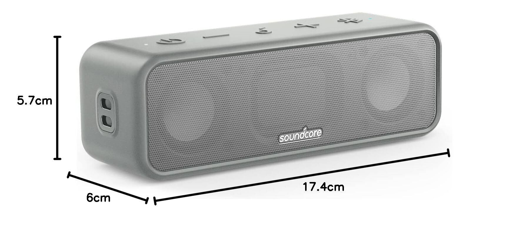 Anker Soundcore 3 Bluetooth スピーカー/ IPX7 防水/チタニウムドライバー/デュアルパッシブラジエーター/BassUpテクノロジー/アプリ対応/イコライザー設定/USB-C接続/ 24時間連続再生/ PartyCast機能/お風呂で使用可能/プレゼントやギフトに最適/グレー