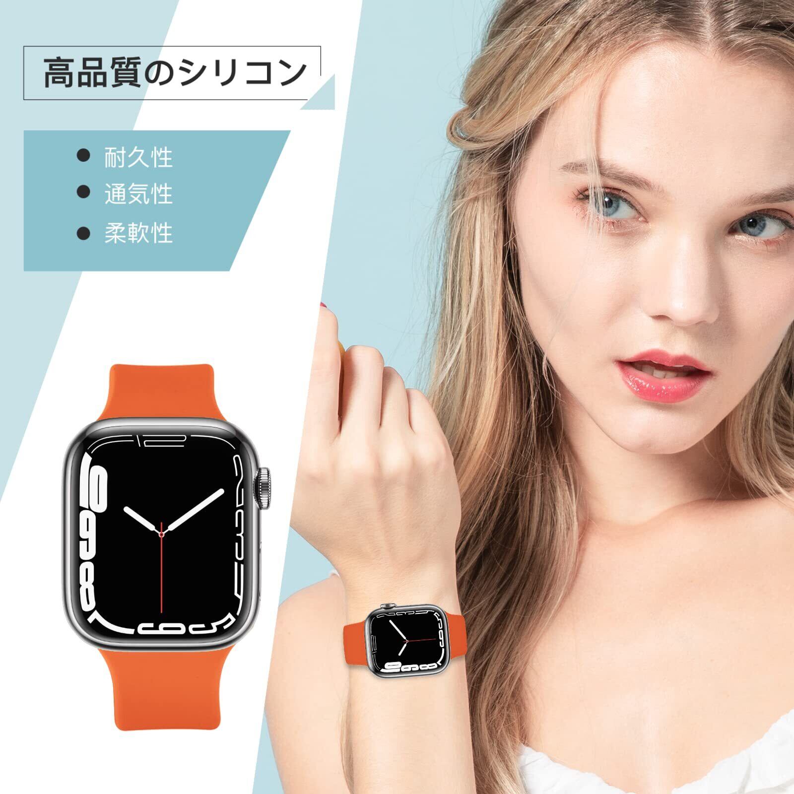 THWALK コンパチブル Apple Watch バンド ベルト 柔らかいシリコン素材のスポーツバンド 防水性 通気性 耐久性 柔軟 運動 おしゃれ 40mm 41mm 42mm 44mm 45mm 46mm 49mm S/M M/L アップルウォッチ Ultra 2/Ultra SE Series 10/9/8/7/6/5/4 に対応 (オレンジ, 40mm/41mm/42mm S/M)