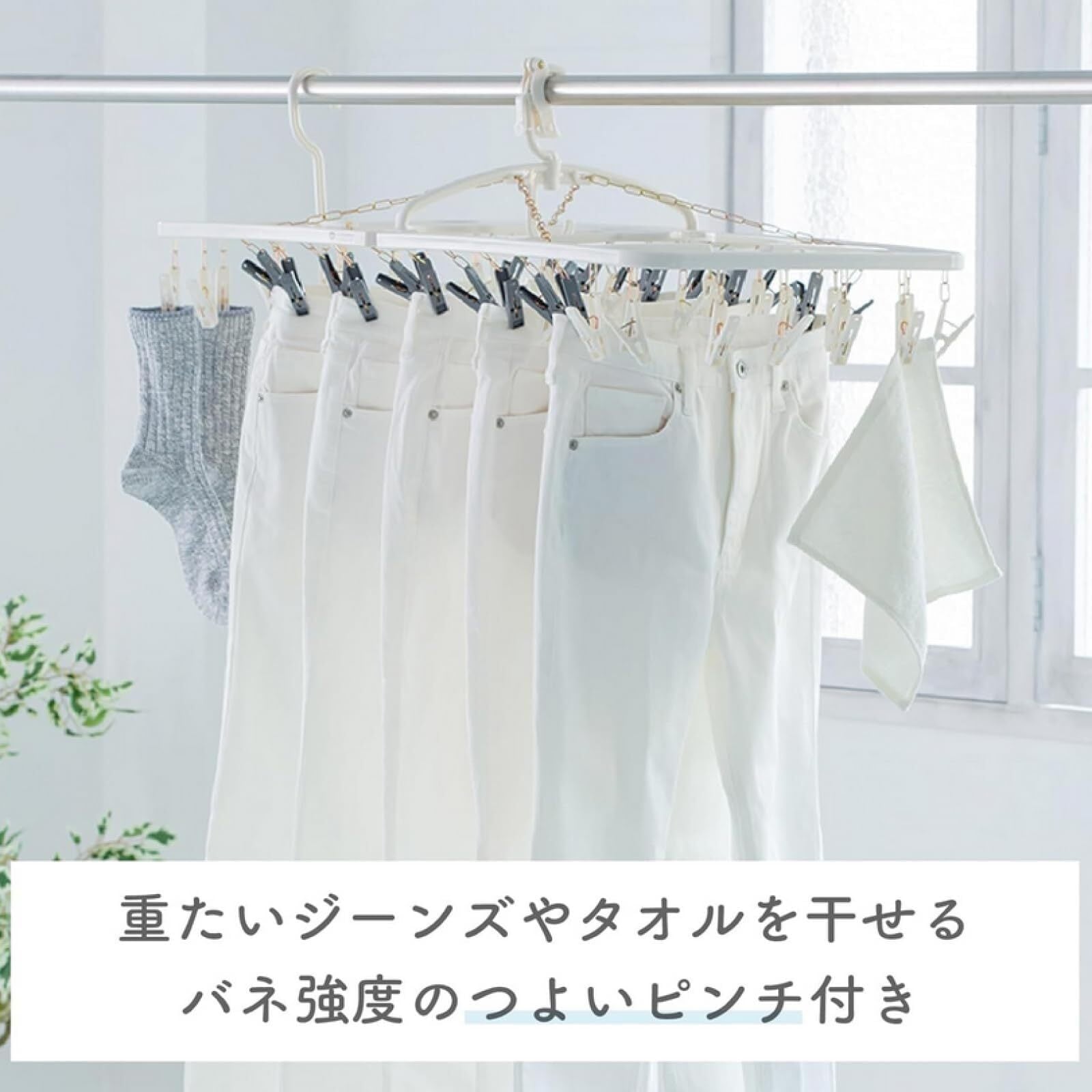 ●20個の「つよいピンチ」で、ジーンズ5本を一度にまとめ干しできます。