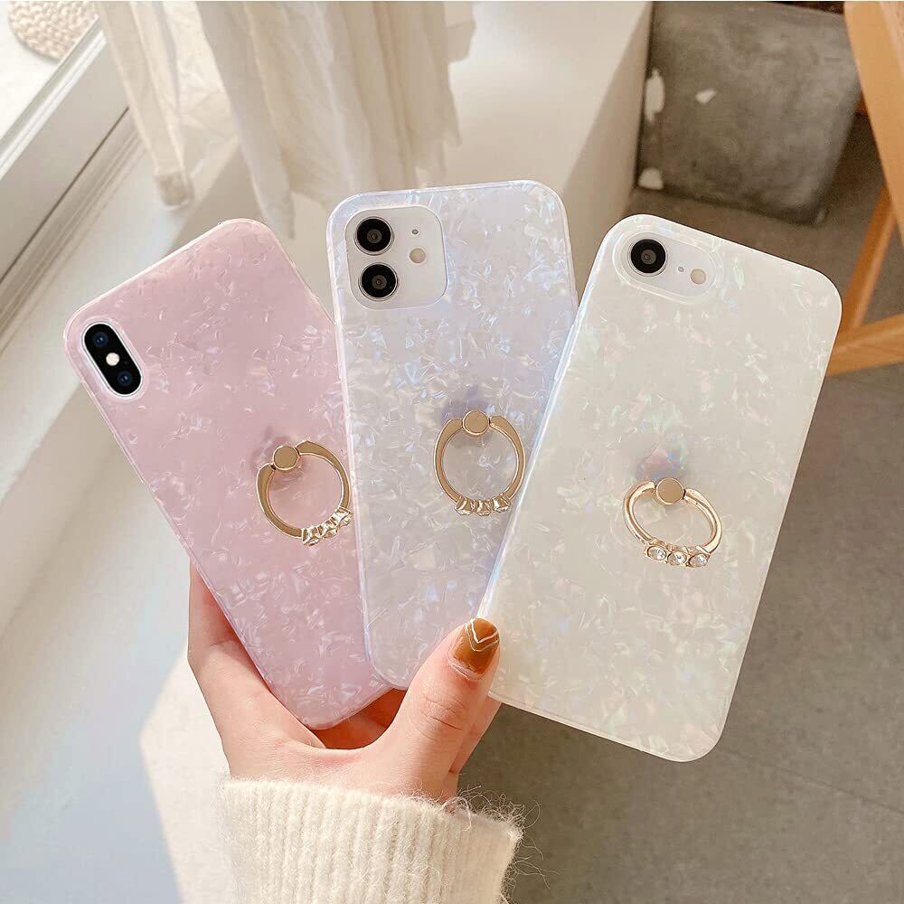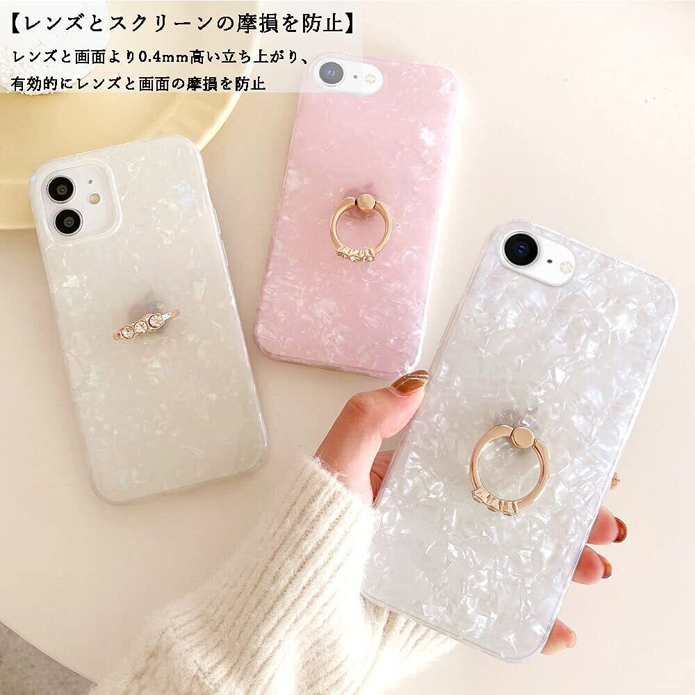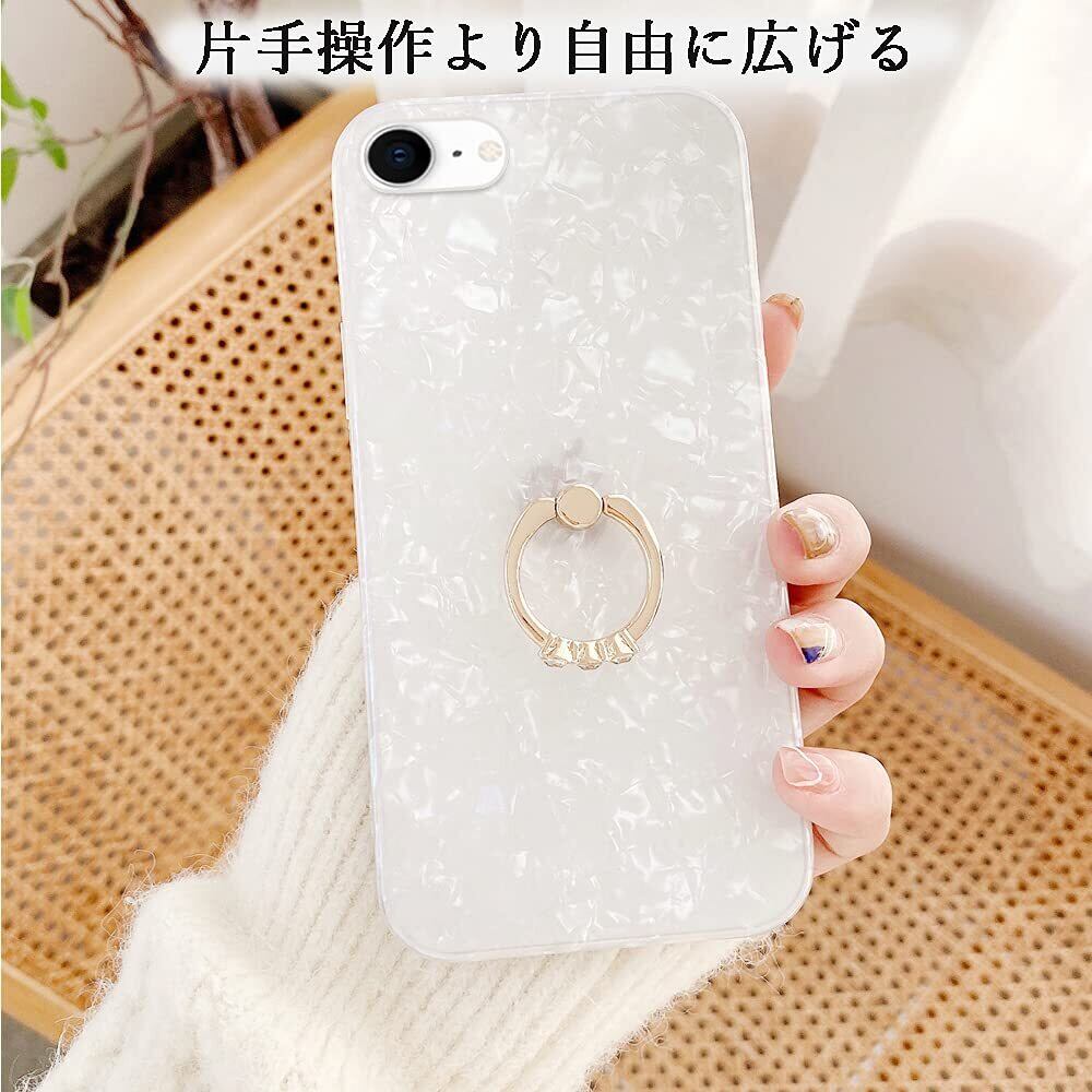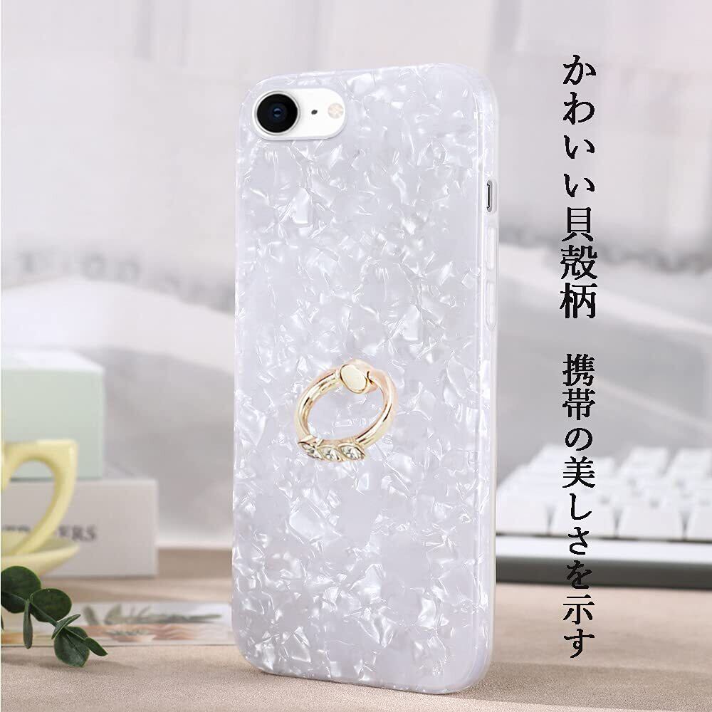 JOOBOY iPhone8 ケース iPhone7ケース iPhoneSE ケース 第2世代 第3世代 リング付き レンズ保護 tpu ソフト シェルパターン 耐衝撃 スリム おしゃれ アイフォン8 ケース (iPhone SE3/iPhone SE2/7/8, ホワイト)